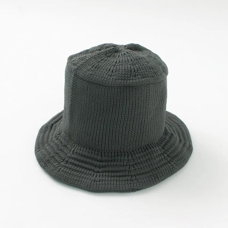 HICOSAKA introduces a bucket hat with a functional beauty that can be incorporated into everyday use. This item is knitted three-dimensionally using the seamless one-piece knitting method. The hat is made to take full advantage of the characteristics of polyester material, and while maintaining its beautiful shape, it has the elasticity characteristic of knitwear, making it comfortable to wear.