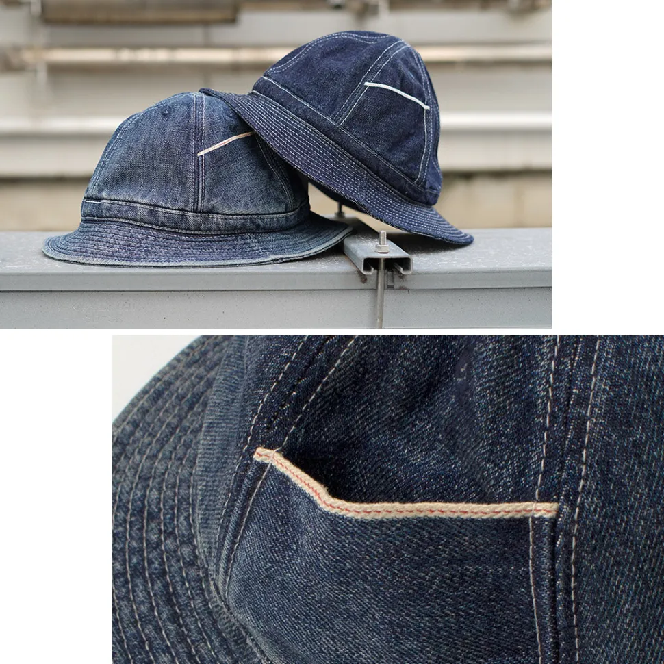 This Japanese denim hat has a vintage look due to the careful used finish.