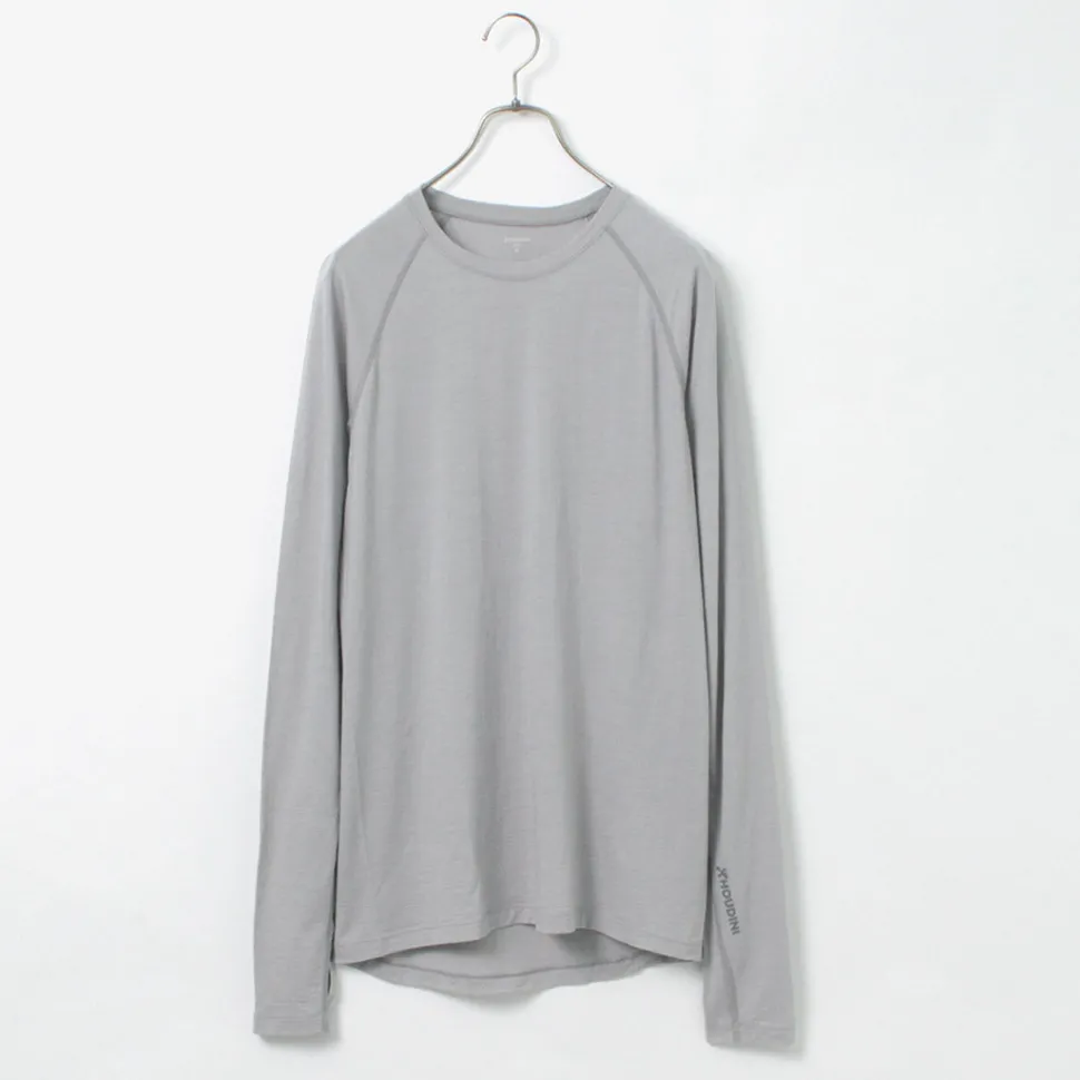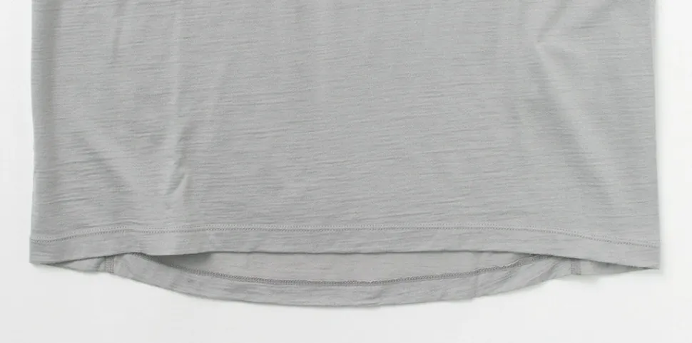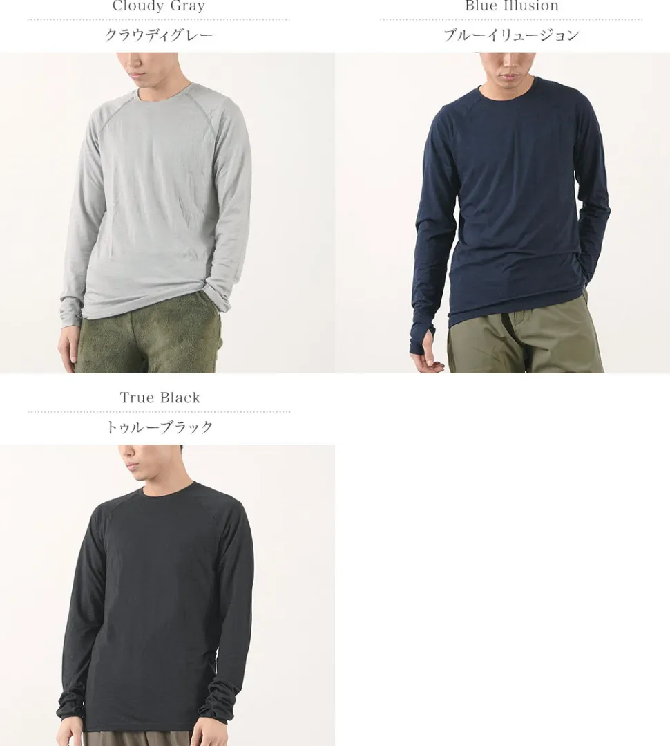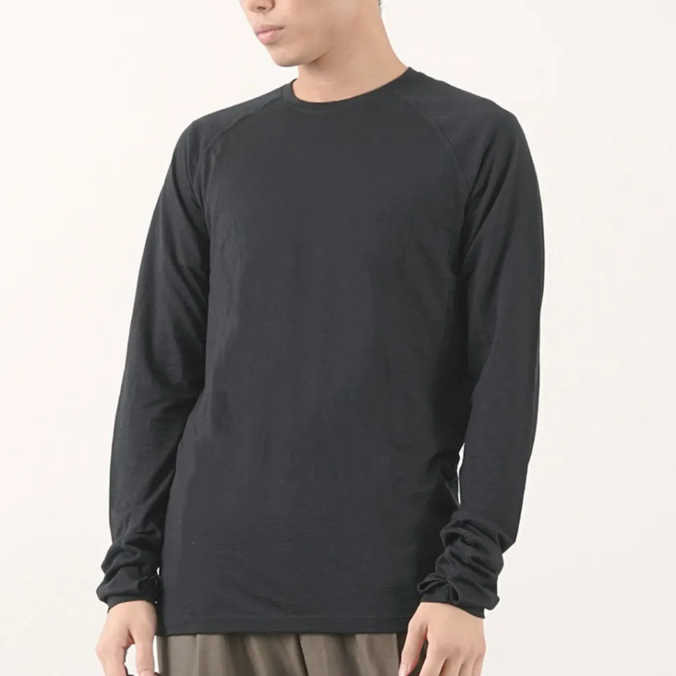 The slim silhouette makes it easy to wear as an inner layer. The raglan sleeves provide a neat and sporty look. Whether it’s for summer running or winter activities like skiing and hiking, or just for everyday life, this is an item that can be worn throughout the year.