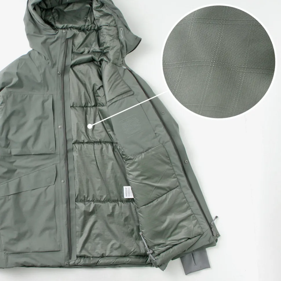 The outer layer is made of a stretchy, waterproof fabric that can be used for full-scale winter sports. The PrimaLoft fabric used for the padding has water repellency not found in down, so it maintains a high level of heat retention even when wet.