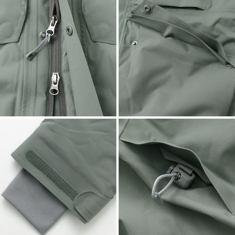 The outer shell features the outstanding waterproof fabric “Spheric 2-layer Hardshell,” known for its durability that can withstand even serious winter sports. It keeps the fabric surface dry in rain, sleet, and even snow while offering two-way stretch for a soft and comfortable fit.