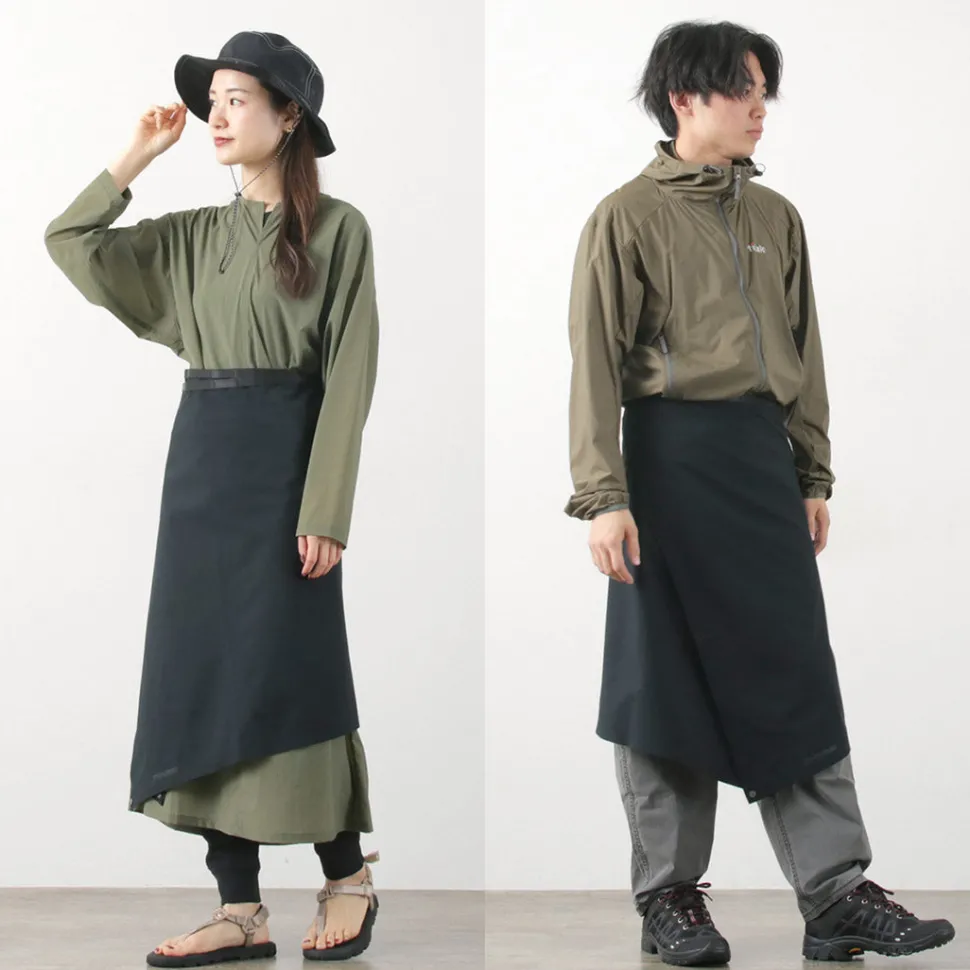HOUDINI introduces the Waterproof Shell Skirt, a minimalist design concept that replaces rain pants. Although a lightweight item weighing approximately 250g, it is a waterproof and windproof 3-layer Loop Hardshell with 2-way stretch elasticity and high breathability.
