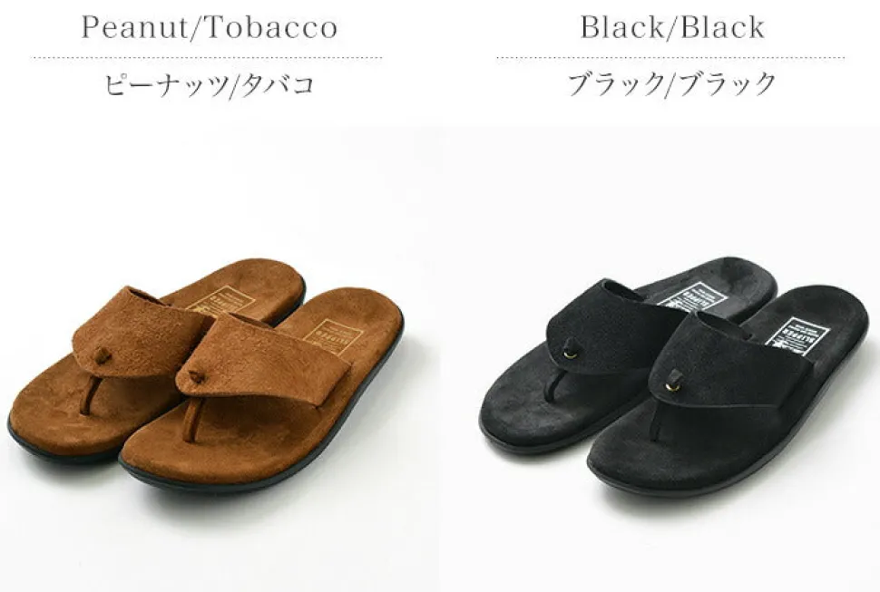 While being a simple tongue type, the design has a wide strap that covers the instep with a nose strap running through it, giving it a fresh impression that is different from the standard tongue type.