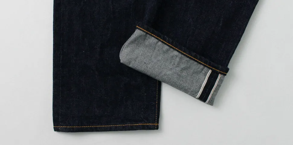 JAPAN BLUE’s classic “prep” selvage jeans with a deep inseam, tight thighs and knees, and a strong drawstring towards the hem. This is a special order model for ROCOCO using 12oz denim with a soft and supple texture.