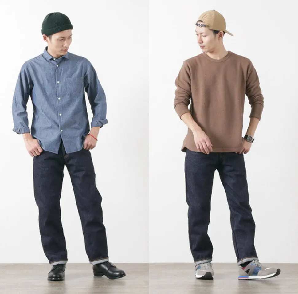 The pattern has been redesigned to create a “curved belt” for a better fit around the waist. The denim is made in Japan without compromise and is easy to wear and suitable for any lifestyle. Rough textured US cotton