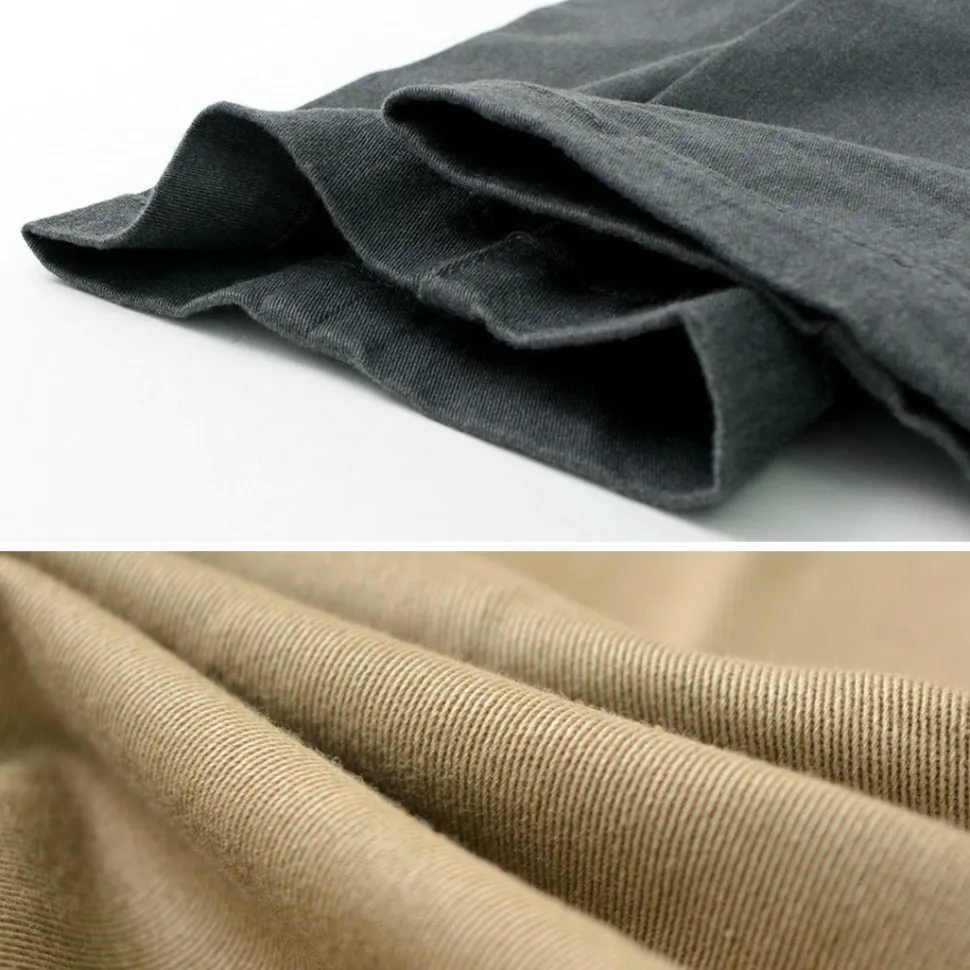 These chino pants are a modification of French work pants. The silhouette is a beautiful slim taper that can be worn in any style.