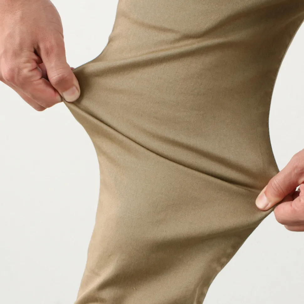 The fabric has excellent durability and can be worn on a daily basis without concern. The thickness is standard chino thickness, so it can be used in all seasons. While the silhouette is tight, the stretchy fabric provides excellent comfort.