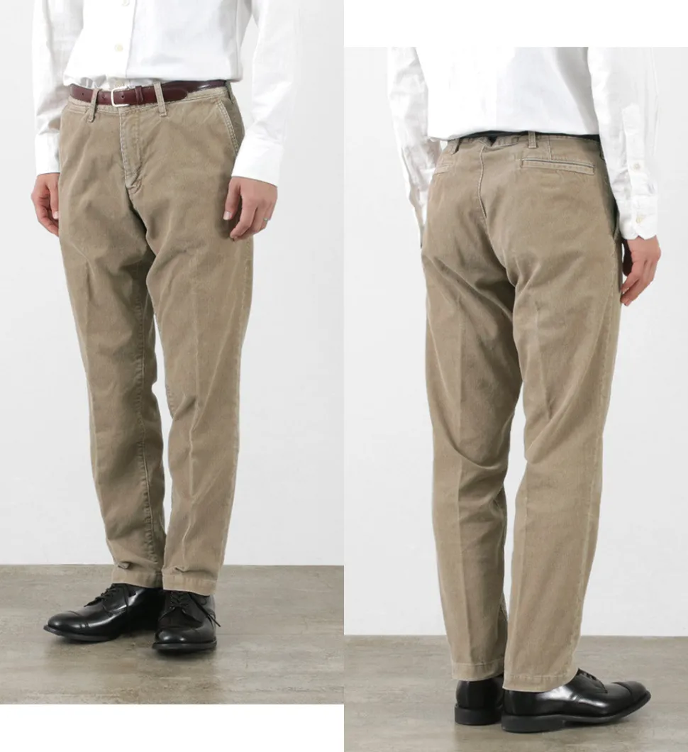Corduroy fabric with different impressions in different colours. This is a pair that you should have in different colours so that you can use it in different on and off styles.