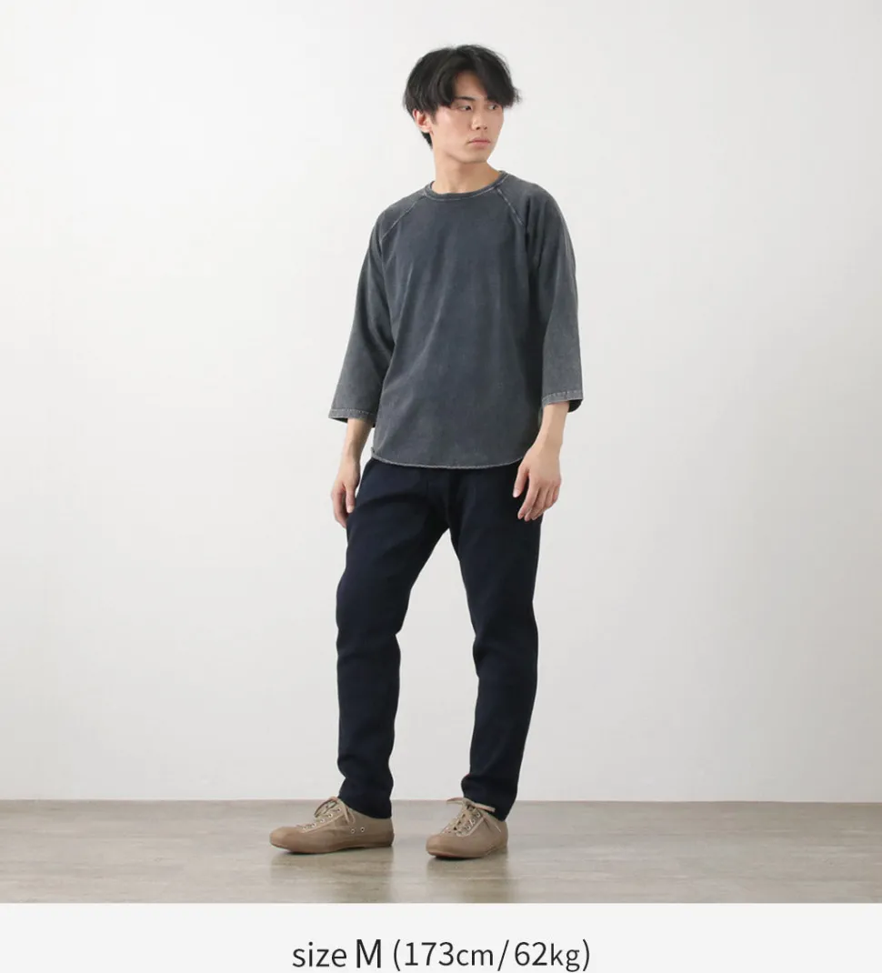 Additionally, it is dyed with the same rope dyeing method as denim, allowing you to enjoy the aging process similar to denim.