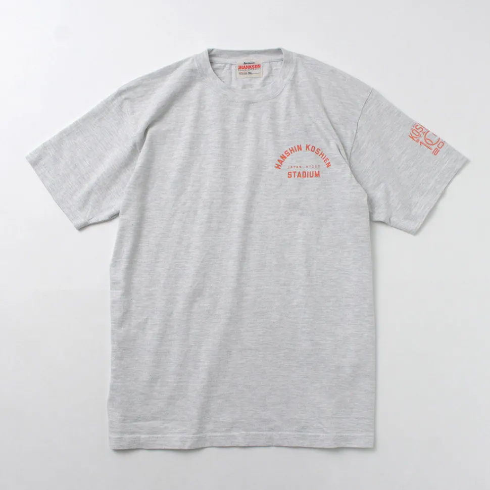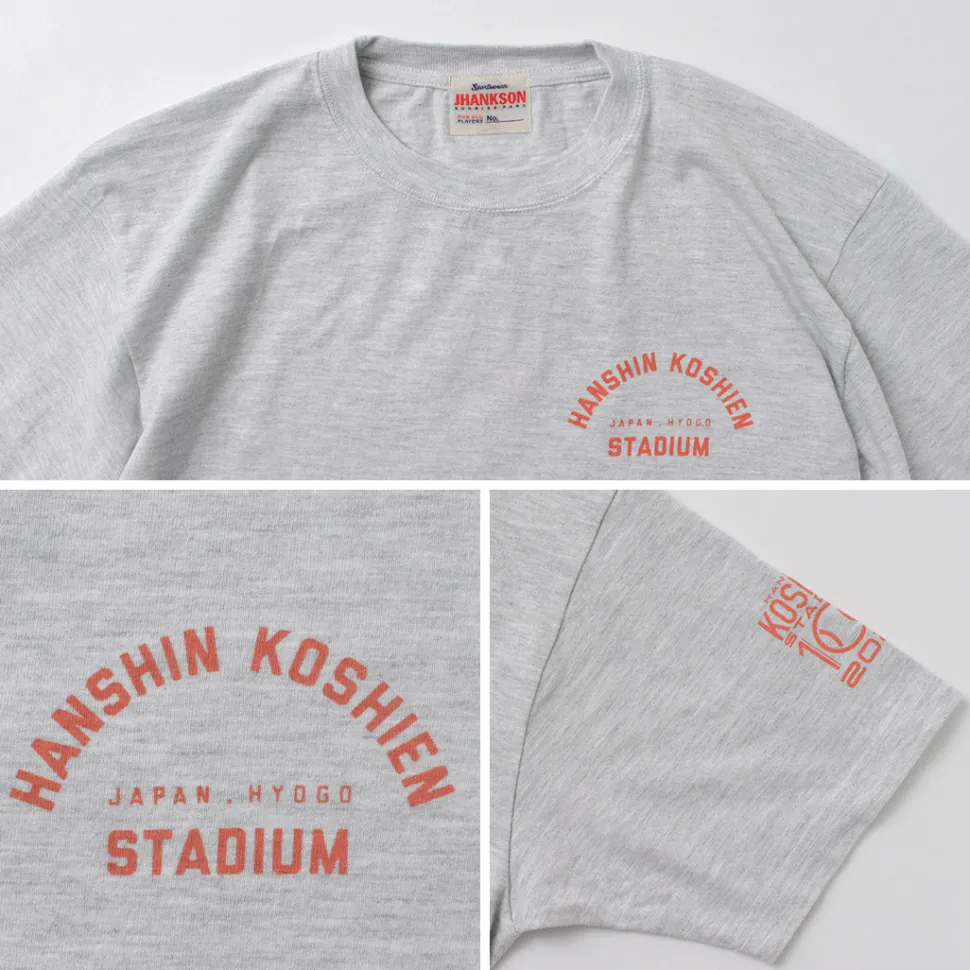 The back features a classic stadium illustration, making this an official collaboration item with the Hanshin Koshien Stadium, perfect for enthusiastic fans.
