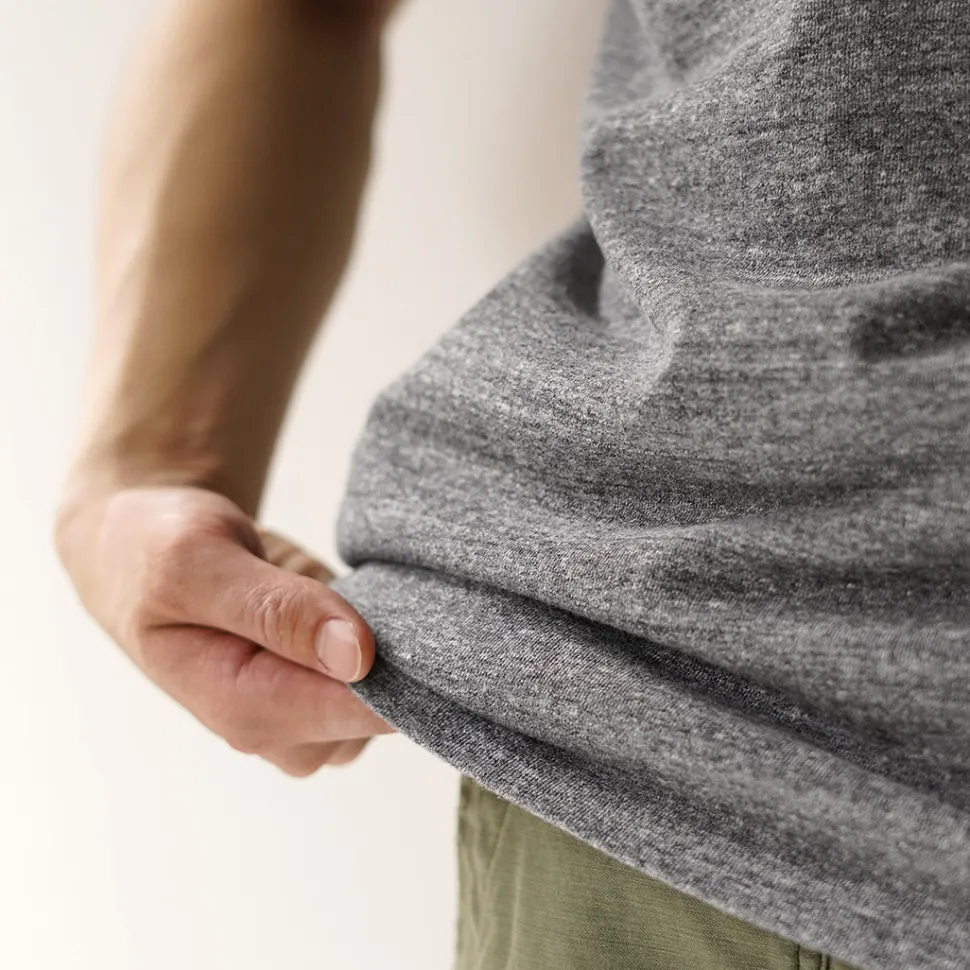 The unique heathered look of the fabric allows it to age beautifully with repeated washing, with the black threads fading to create a personalized vintage look over time.