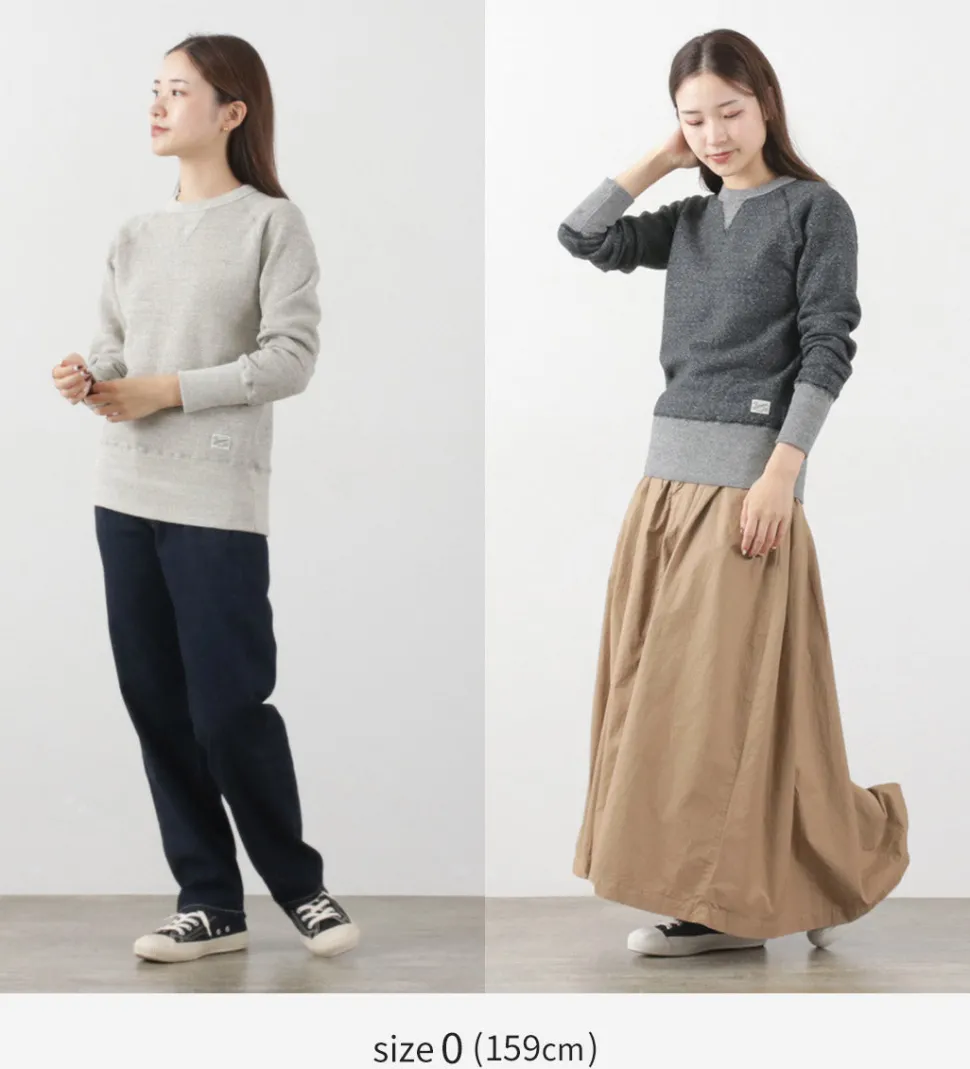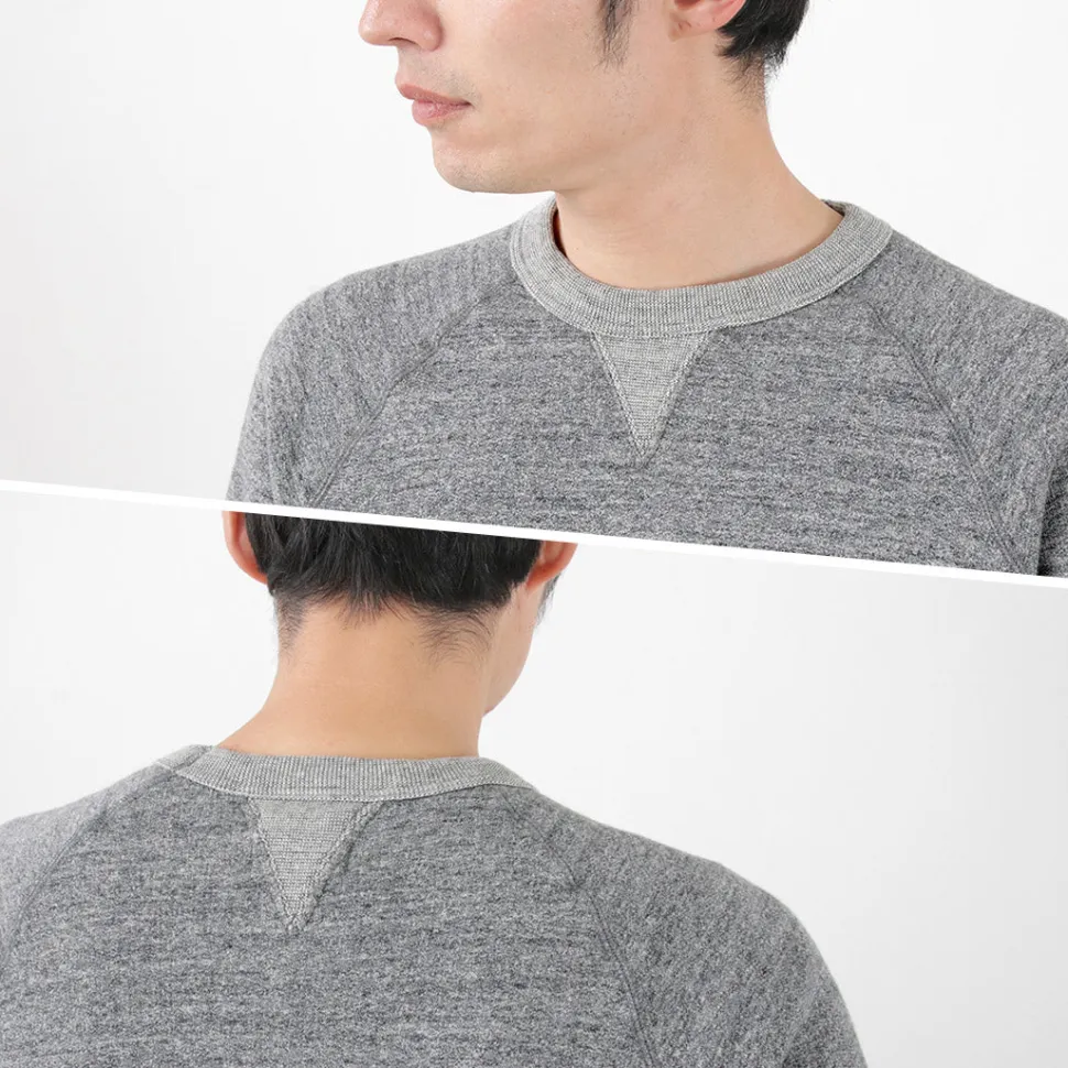 The design is based on vintage sweatshirts from the ’40s and ’50s with inset double-V gussets. The raglan sleeves, which were not widely used at the time, and the ribbed ribs between the legs give it a unique look.