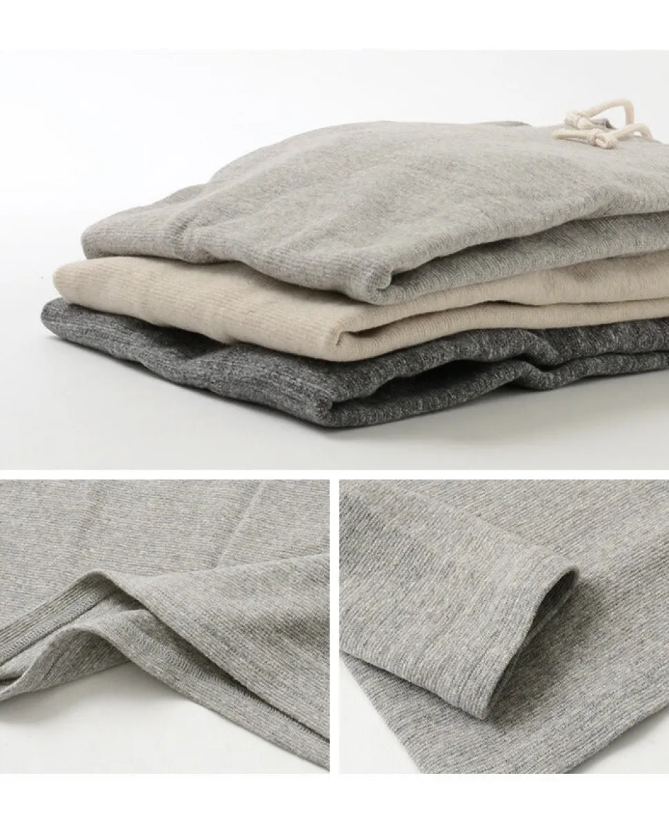 The use of blended Raffy yarns produces an irregularity unique to the melange (heather grey) and fine unevenness depending on how the fabric is knitted, giving it a richly expressive and rustic atmosphere.