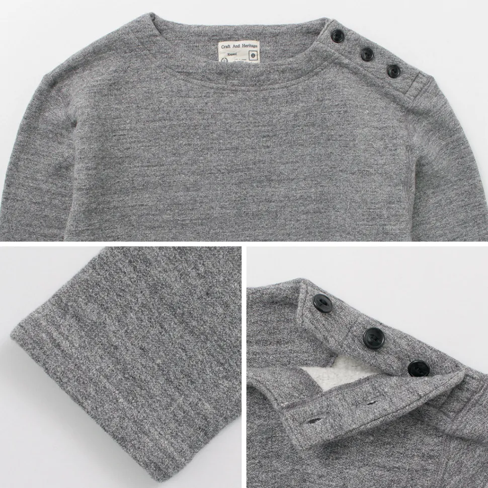 The plush and soft texture is the highlight, and the unparalleled comfort is addictive once you wear it. In addition to the iconic shoulder buttons, the boat neck at the neckline is set at the perfect opening angle, making it easy for people of various ages to wear.