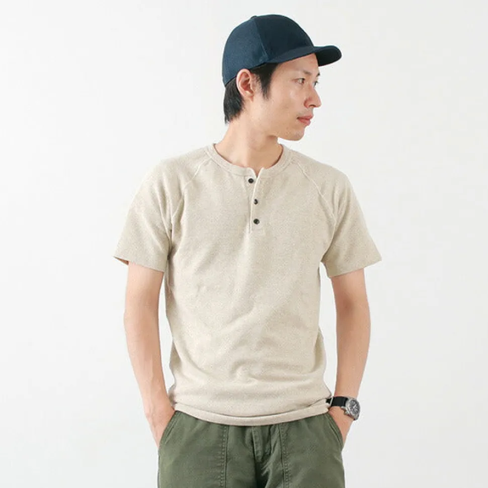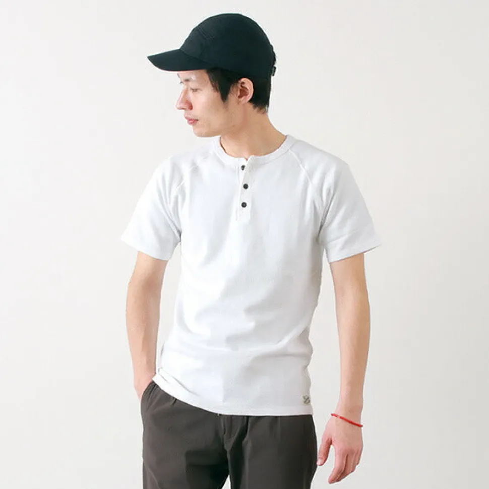 The KEPANI standard milling t-shirt, which has been loved for many years for both short and long sleeves, is now available in a henley neck version. The reason for its popularity is the comfortable fit created by the high elasticity of the Raffy spun milling fabric, which is spun with mixed raffy yarn and stretch yarn in the weft direction. From the choice of material to the sewing, comfort is their top priority.