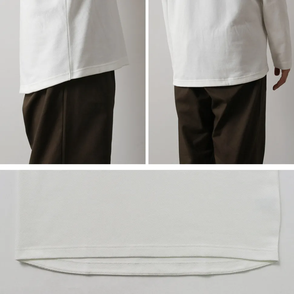 The fabric used is 100% cotton big piqué, offering durability and a unique textured look thanks to its twisted-free yarn. It’s refined and doesn’t come off as too casual, making it easy to style in various outfits.