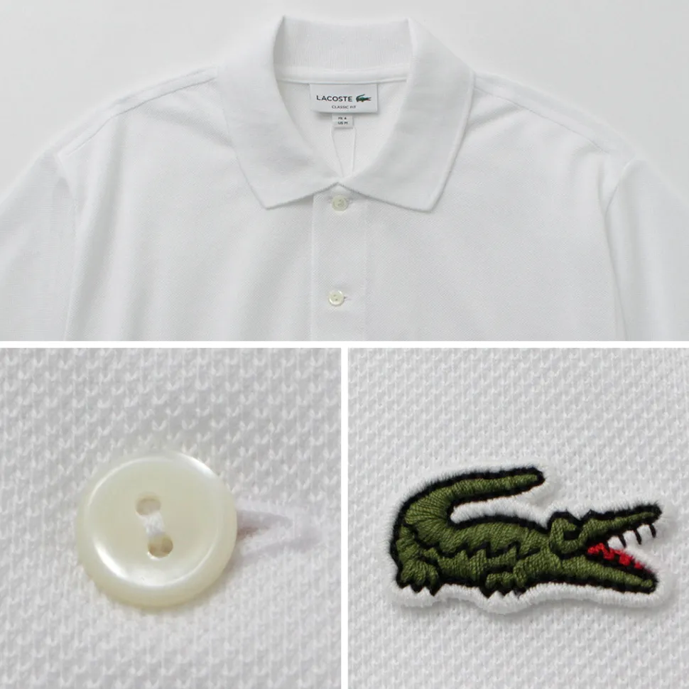 The iconic crocodile logo, a hallmark of Lacoste polo shirts, is placed on the left chest. It is made with approximately 1,600 stitches.