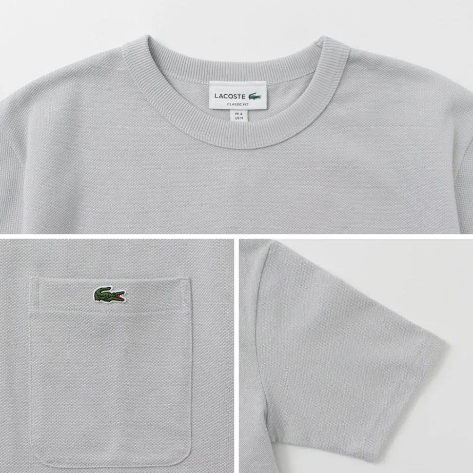 LACOSTE introduces a crew-neck T-shirt with a patch pocket featuring a clock emblem on the left chest. The basic appearance of this T-shirt is simple, but the use of Lacoste’s typical pique fabric, the classic fit silhouette with a moderate amount of room, and the duck tail with a longer back body give this piece a brand-like appearance.