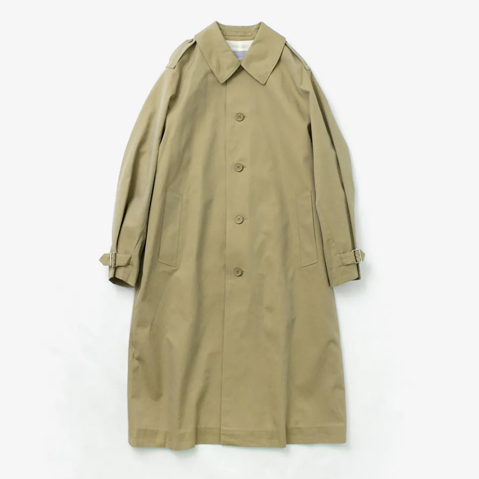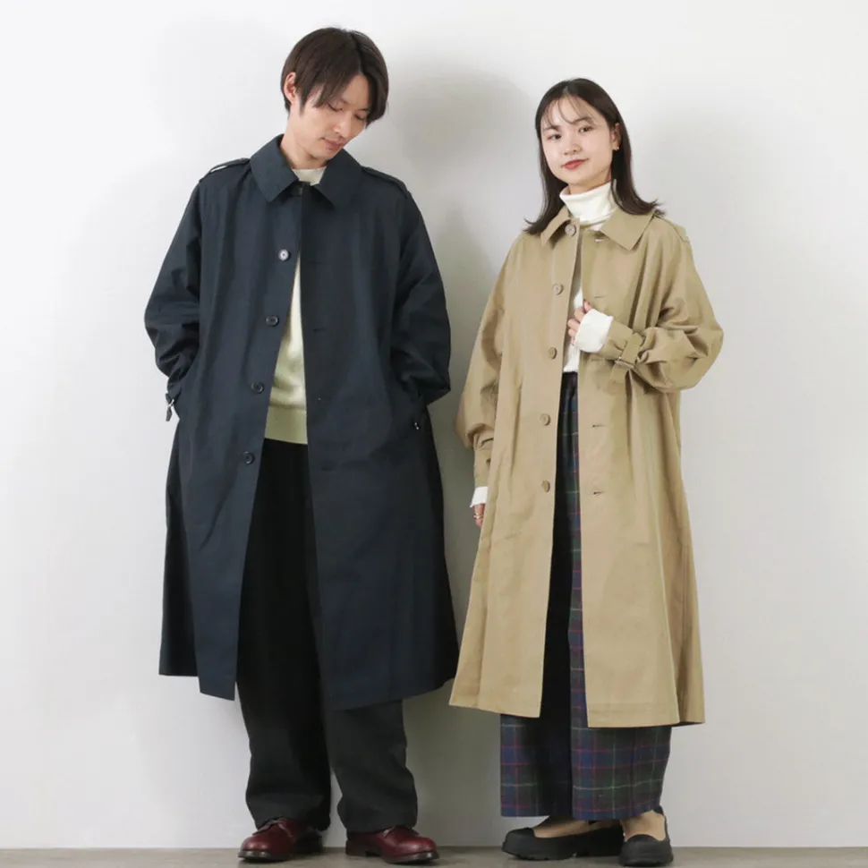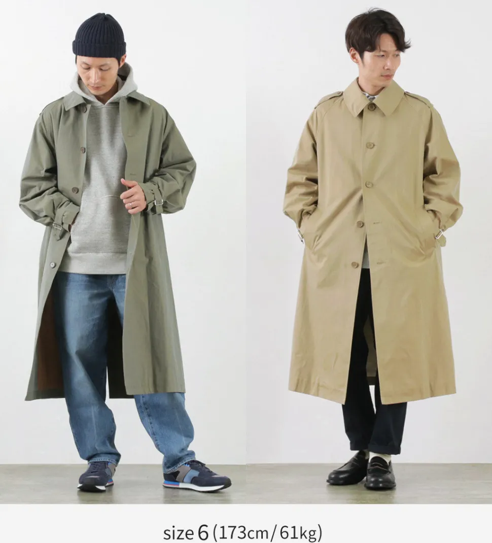 A coat with an overall loose, oversized fit. The raglan sleeves reduce the horizontal spread and give it a sleek appearance. The long length creates an elegant mood just by throwing it on. It is also lightweight despite its appearance and can be worn comfortably from autumn to spring.
