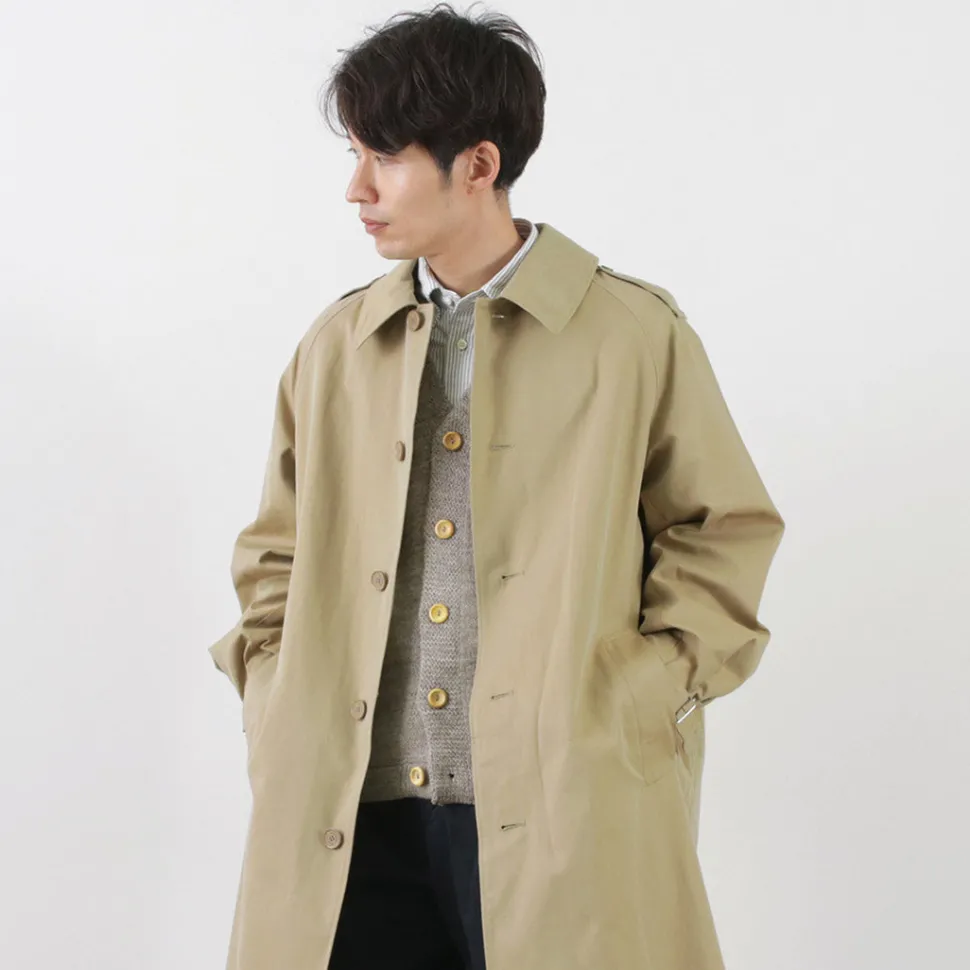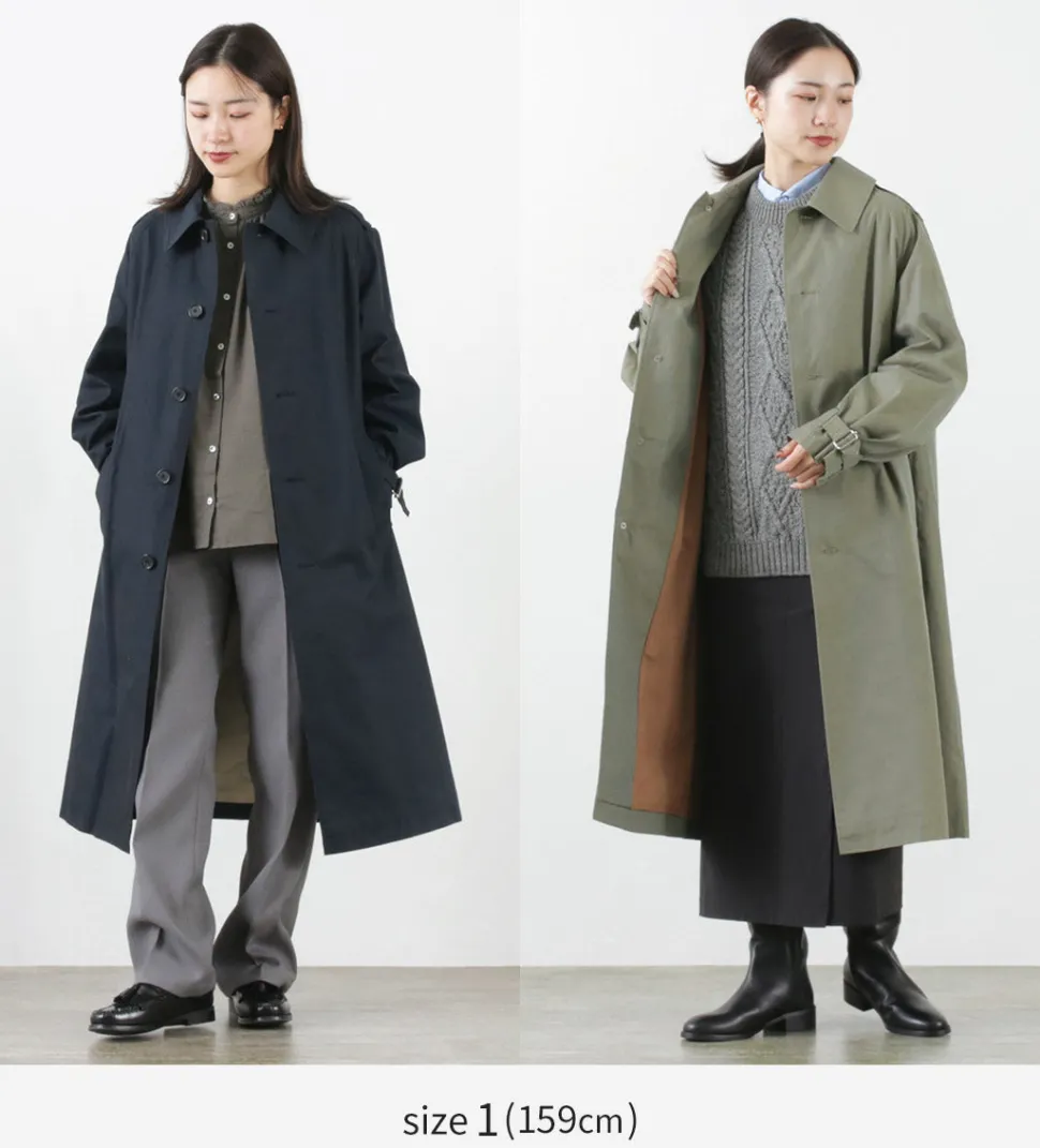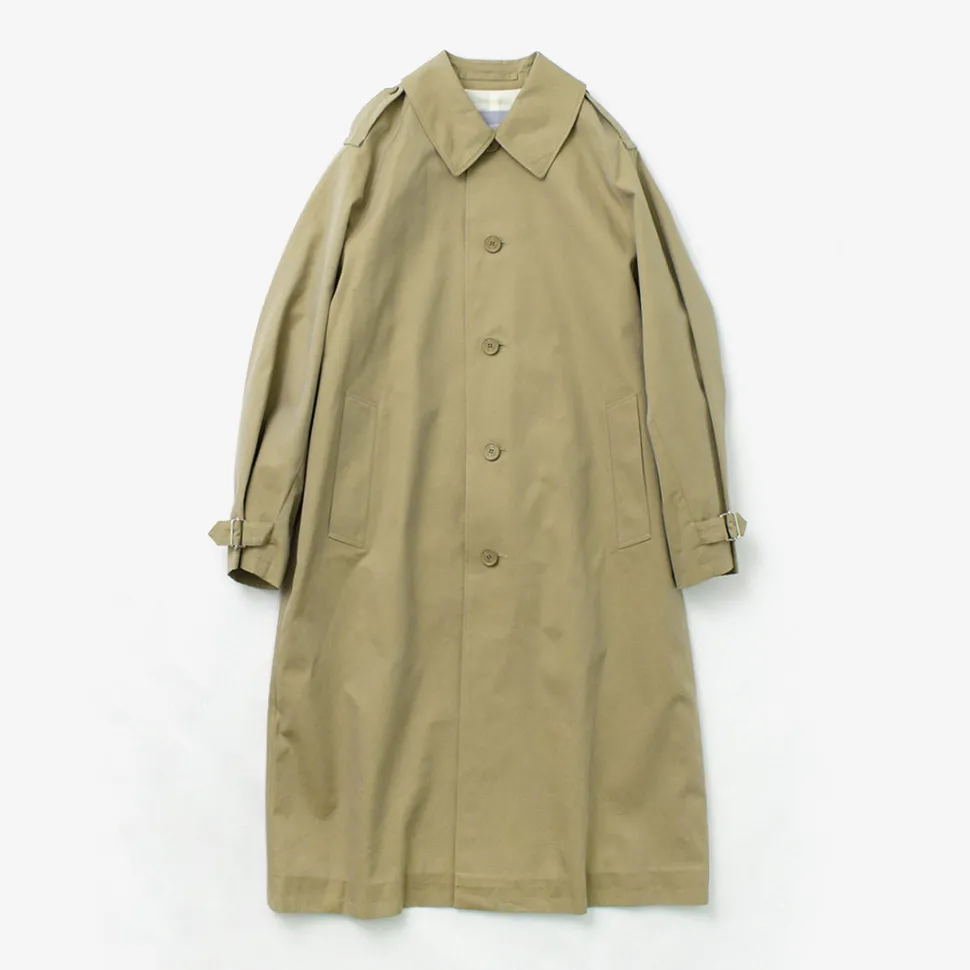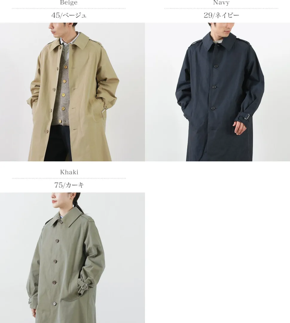 A coat with an overall loose, oversized fit. The raglan sleeves reduce the horizontal spread and give it a sleek appearance. The long length creates an elegant mood just by throwing it on. It is also lightweight despite its appearance and can be worn comfortably from autumn to spring.
