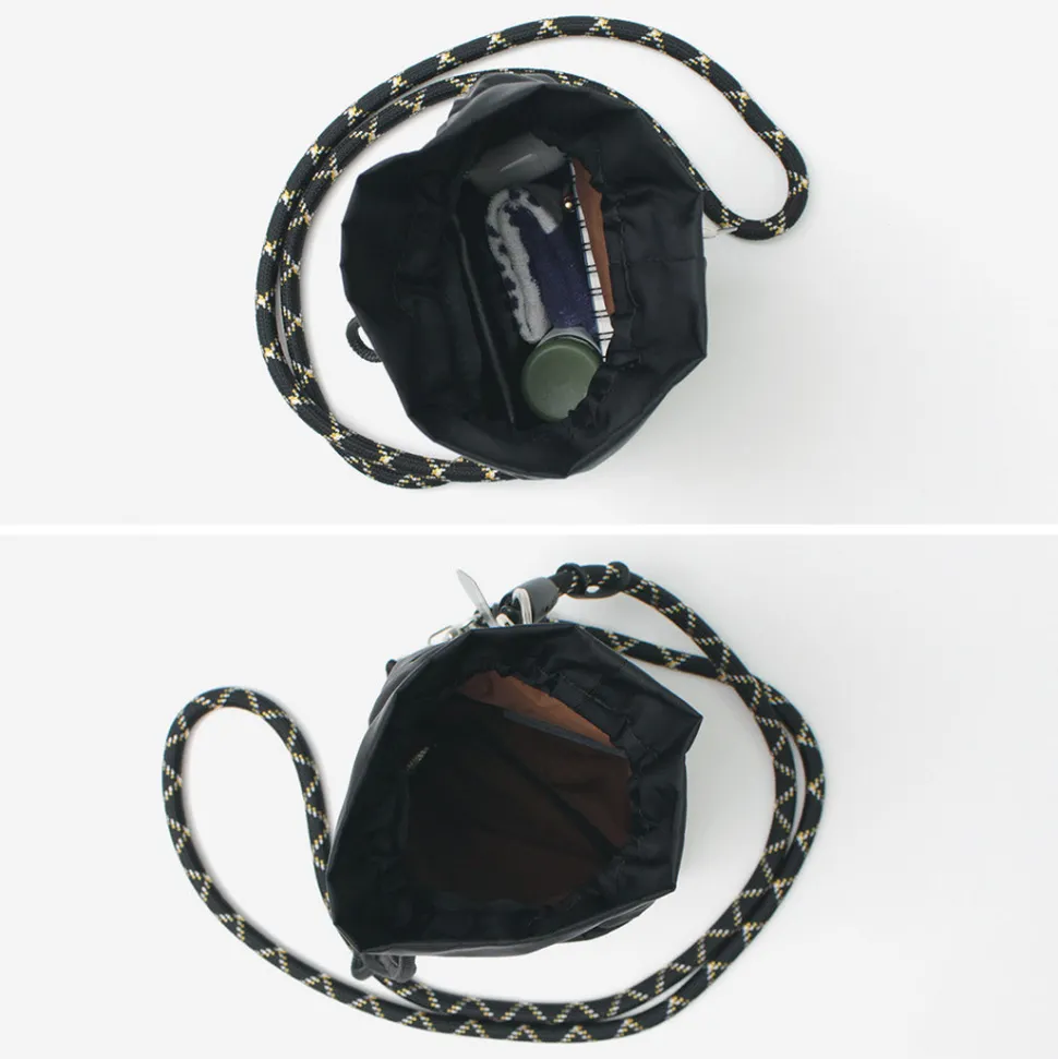The binding uses the EPM alligator lock system, a rope-end connector made by YKK that is known for its solid strength. The accessory hook ring can be used to attach not only a smartphone case and drawstring pouch, but also a key ring.