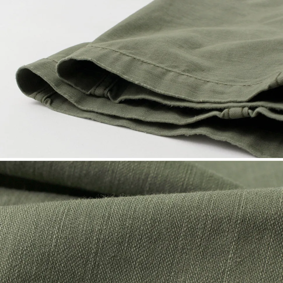 The fabric is made of back satin that has been painstakingly washed to reproduce vintage-like changes over time. The wide piped stem silhouette, popular with the brand, is a mix of the American casual royal pants, making this a pair that will be worn for a long time.