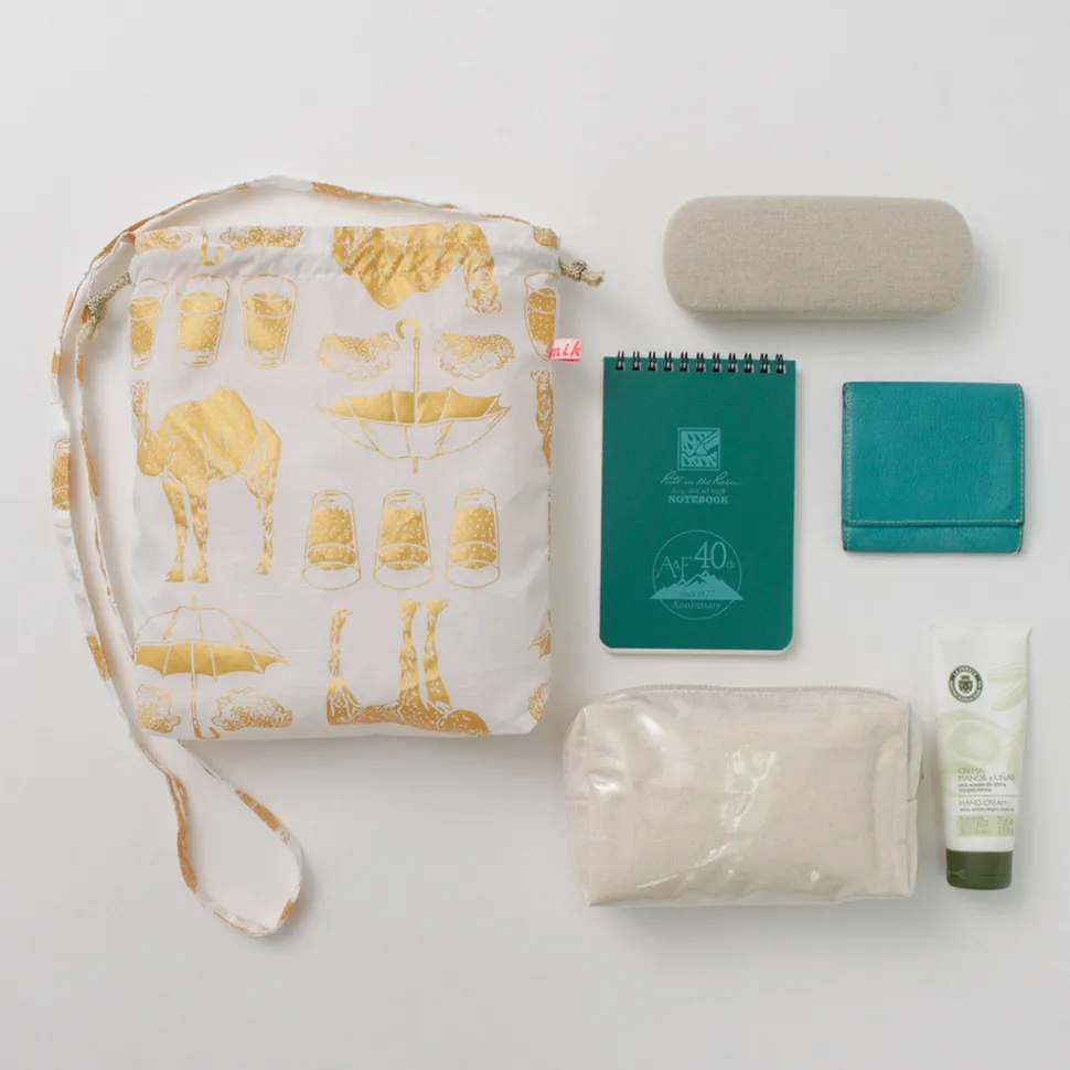 It can be used as both a shoulder bag and a drawstring bag with its 2-way design.