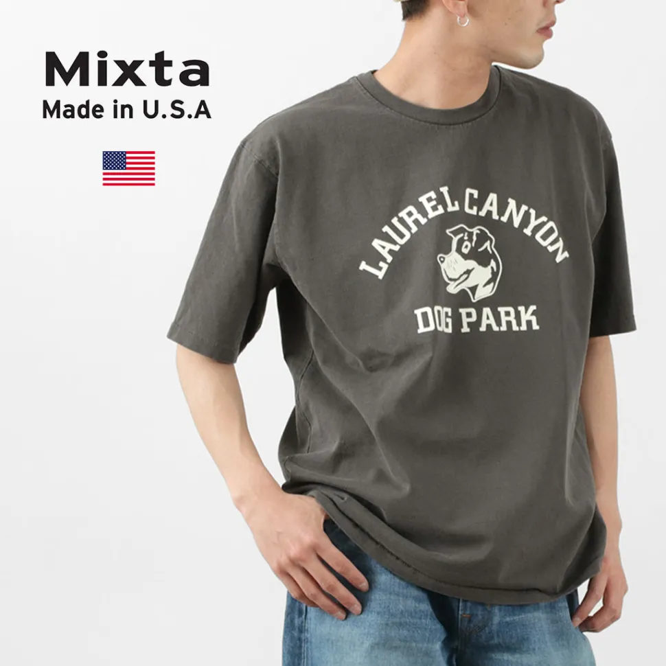 MIXTA carries out all processes, including fabric production, dyeing, printing and sewing, at its own factories in the USA. The T-shirts are full of the atmosphere of the good old days and are finished with a vintage feel that is irresistible to American casual lovers.