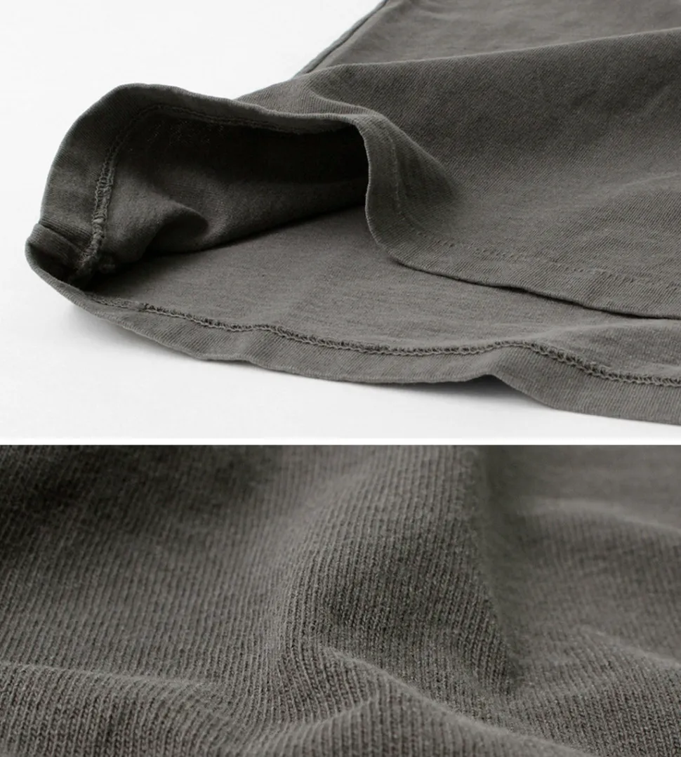 The neck ribbing is uncompromising attention to detail, using deadstock ribs from the 1970s. The name on the back of the neck is printed instead of a tag, which ensures a comfortable fit without prickly stress.
