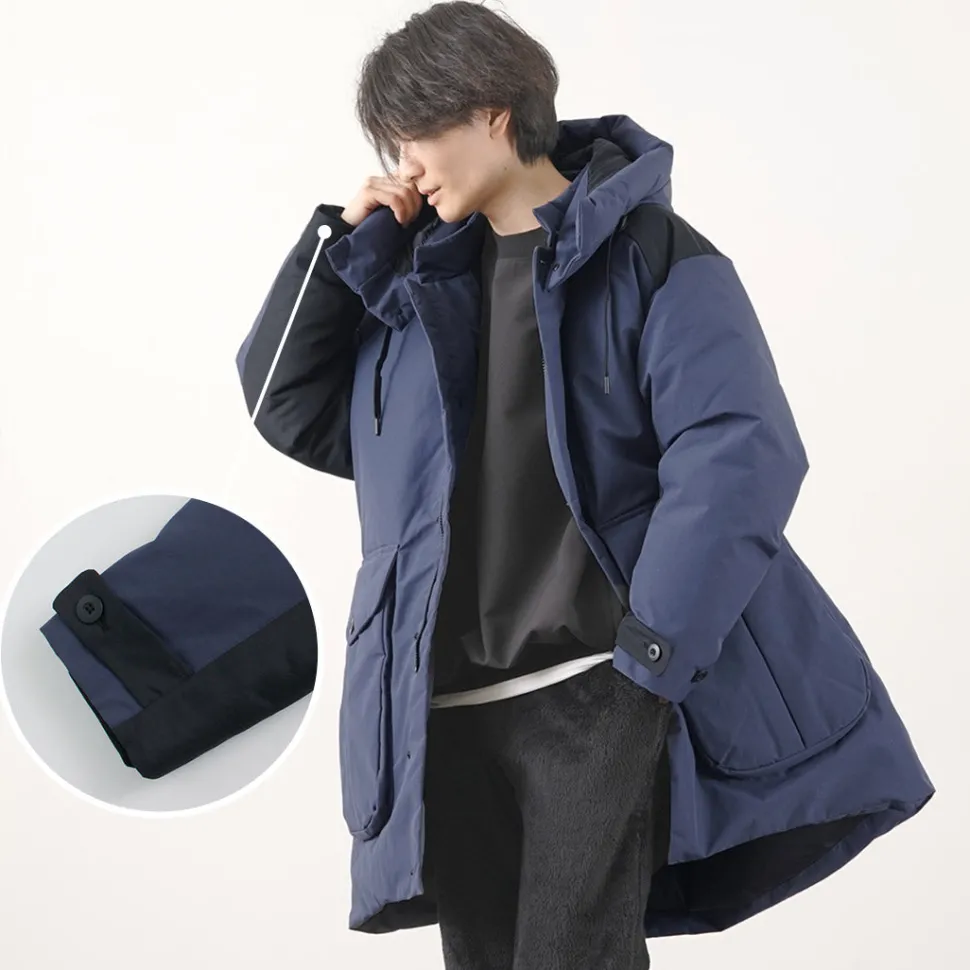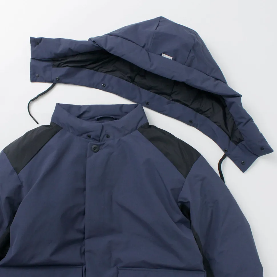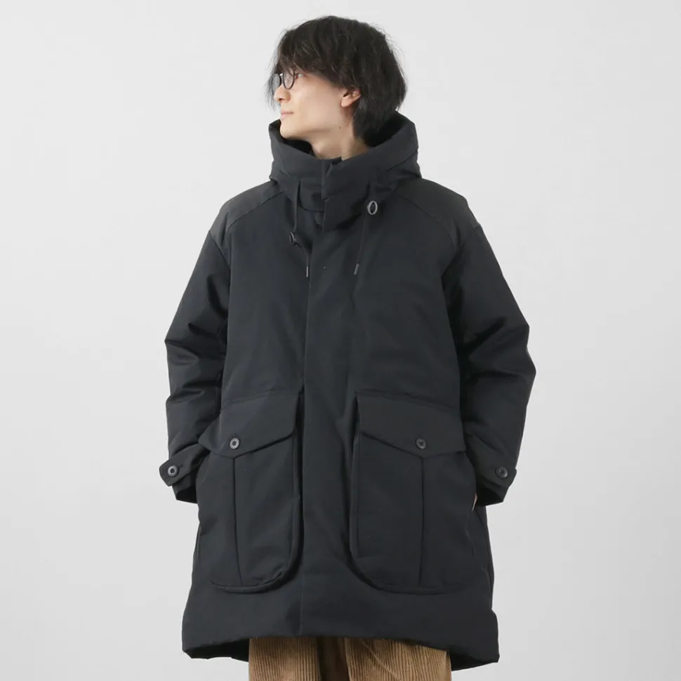 A relaxed silhouette with plenty of room. The design has no visible down seams on the outside, giving it an elegant impression despite being a down coat. From outdoor use to town use, to business scenes with the hood removed, this is a piece that can be used in all kinds of situations.