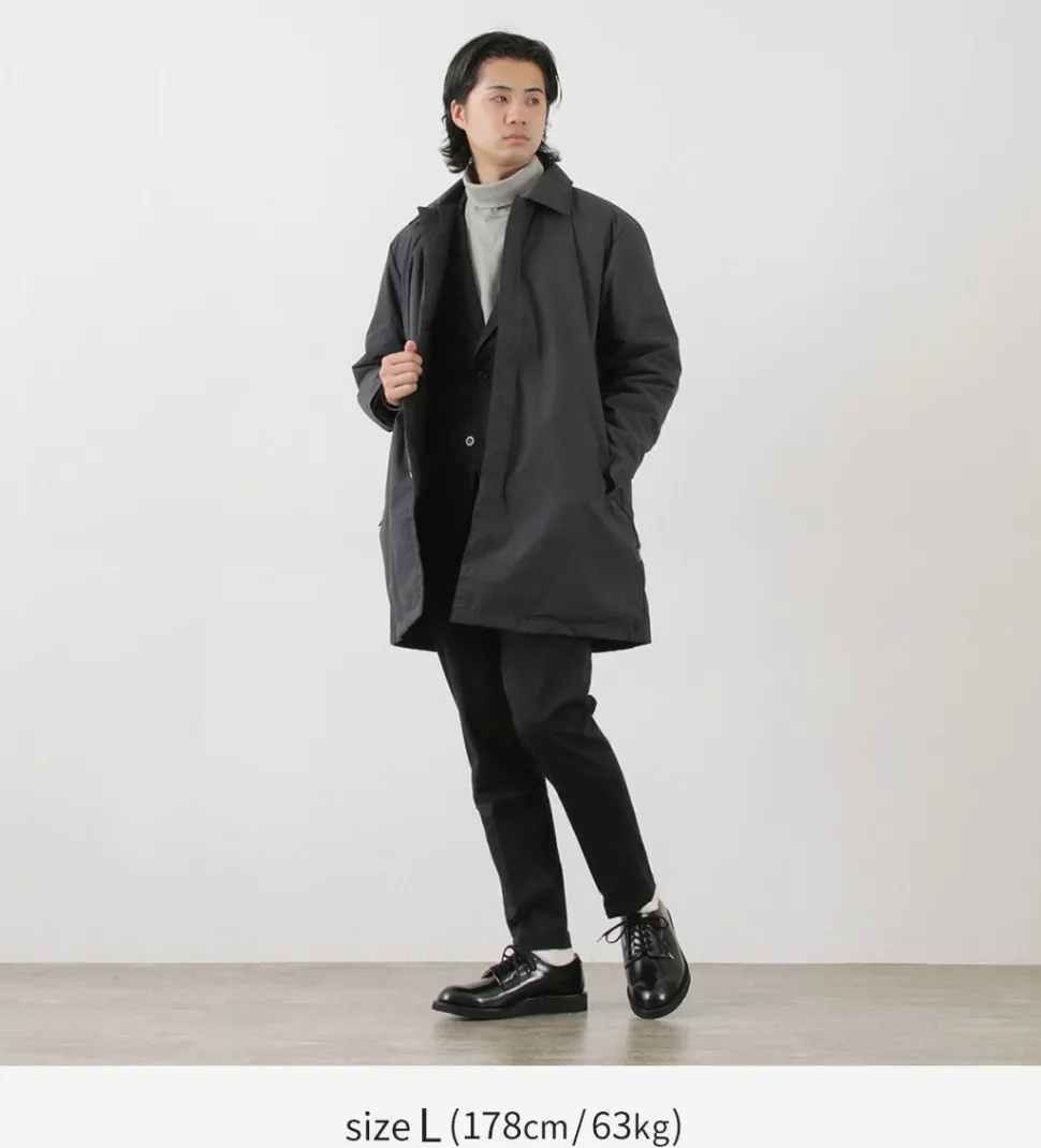 Although the inline version is large in size, we have made changes to the size so that it does not look too oversized. The silhouette has been carefully designed so that it can be worn over a jacket with ease while keeping a clean look.