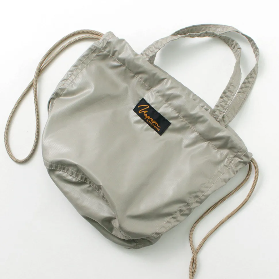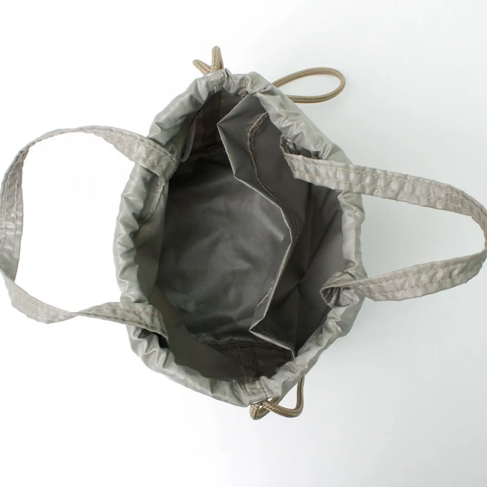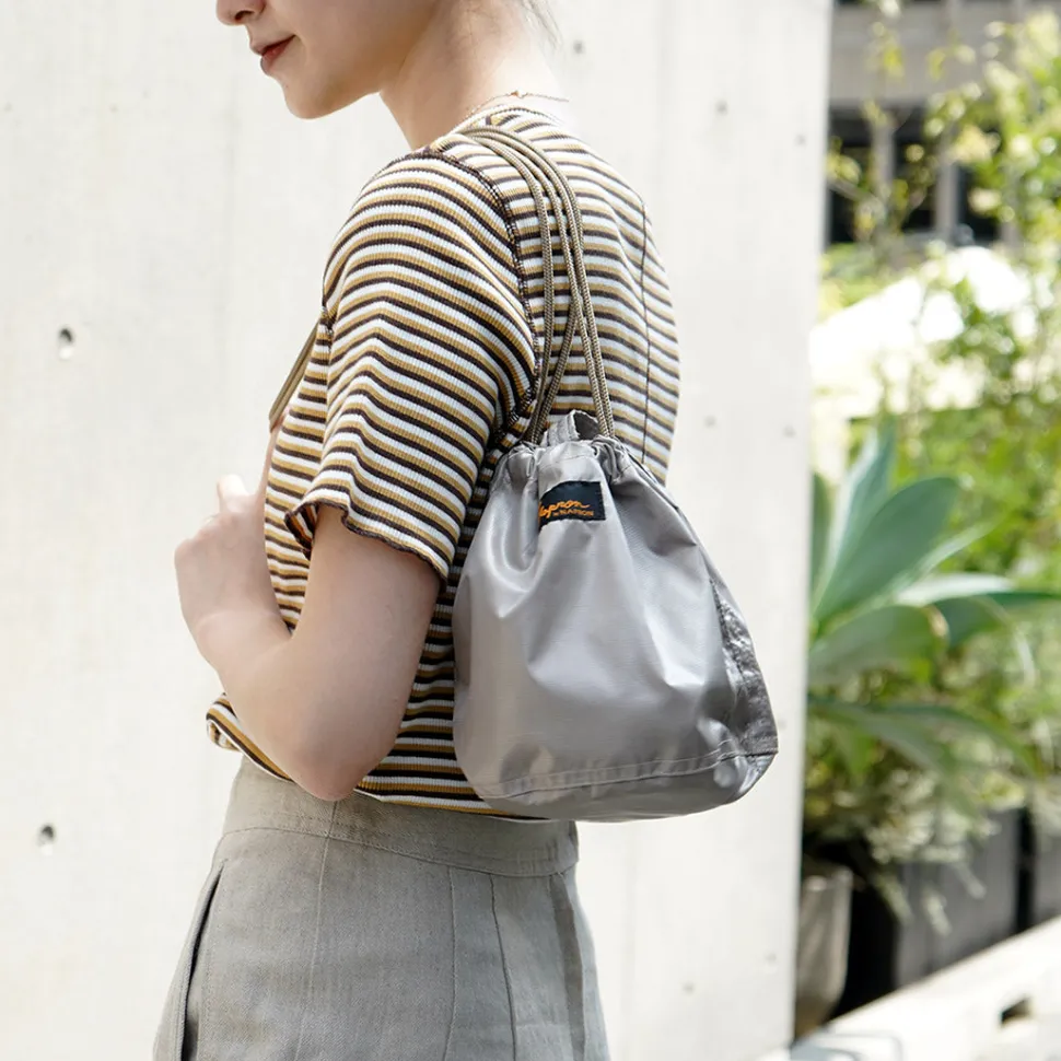 Hold the drawstring part over your shoulder or, on days with a lot of luggage, hold the handle part without squeezing the mouth. The bag can be changed according to capacity, for example, when you have a lot of luggage.