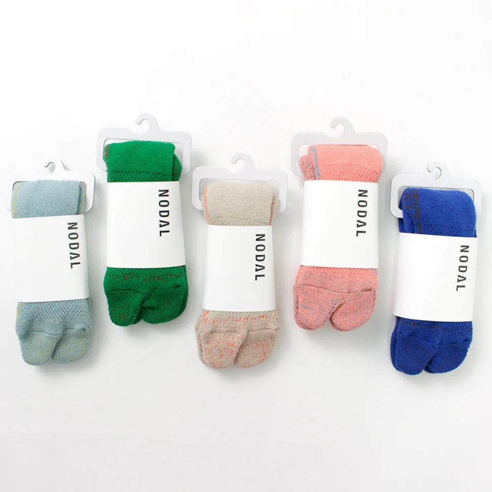 NODAL is a Japanese sock brand specializing in tabi-style socks, produced by Tamai Shouten, a long-standing tabi manufacturer founded in 1889. The name NODAL represents the point where things intersect, and it conveys the knowledge and quality cultivated in tabi production to the world of fashion and sports.