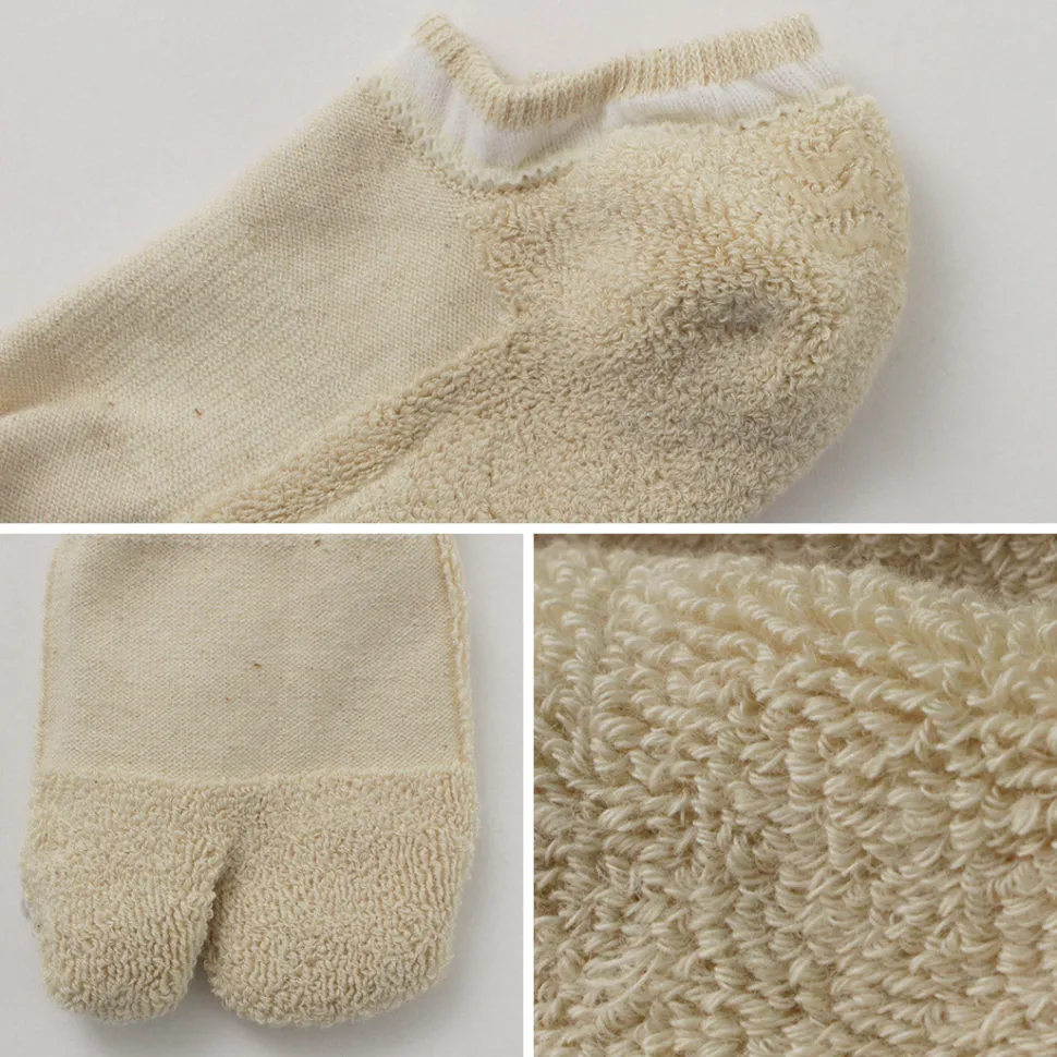 The soft pile fabric absorbs shock every time you step on them. In addition, they absorb sweat like a towel, so you can enjoy a refreshing feeling without worrying about stuffiness. The ankle-length design is perfect for sneakers and ankle-shaping outfits, and the natural texture can be enjoyed.