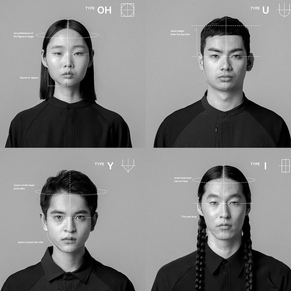 Four types of hats produced from the brand’s concept of thinking through the perfect fit for each face type.