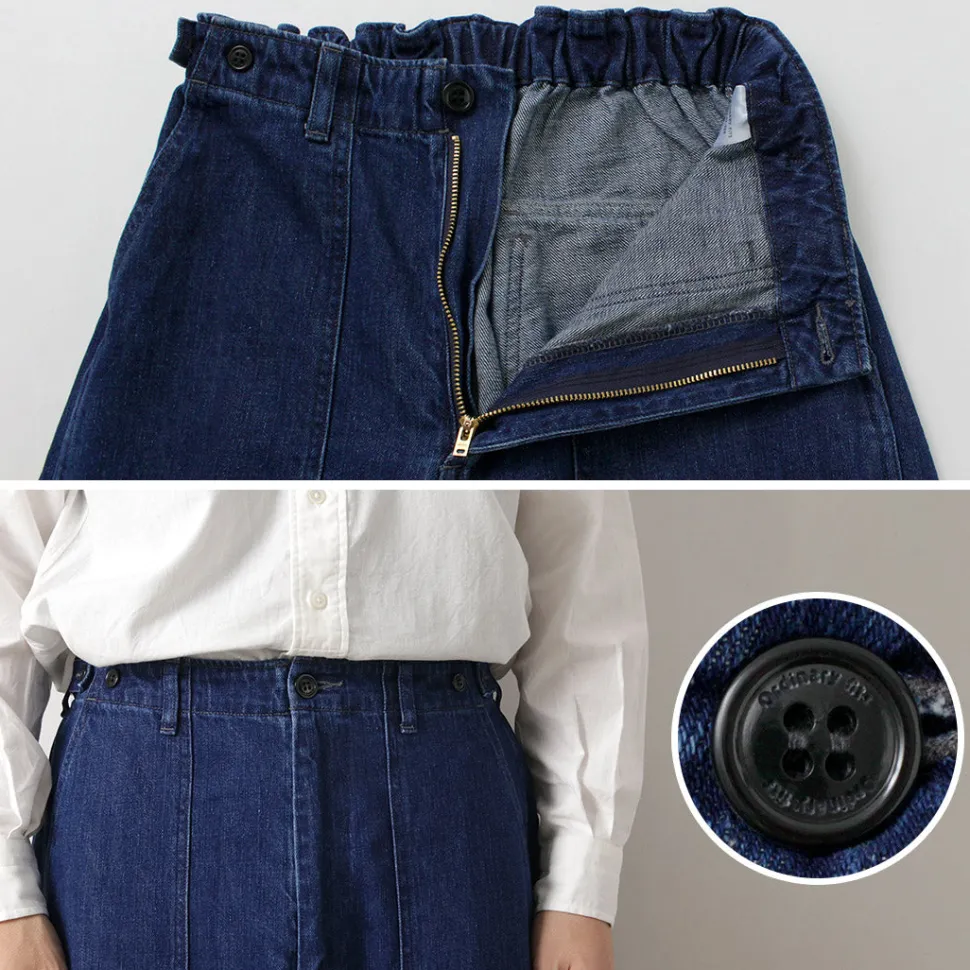The fabric is 100% cotton denim, woven from neppy yarn with revival cotton (fallen cotton) used for the warp threads.
