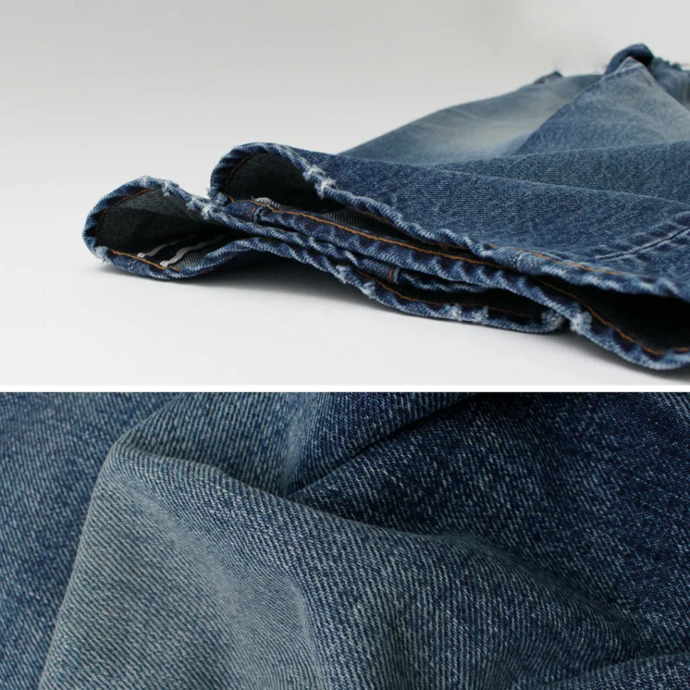 It features a standard silhouette with a loosely readjusted tapered shape. The sewing is finished with reference to the specifications of famous brands, which are indispensable when talking about denim, and the used finish faithfully reproduces vintage denim, making this a pair full of attention to detail.