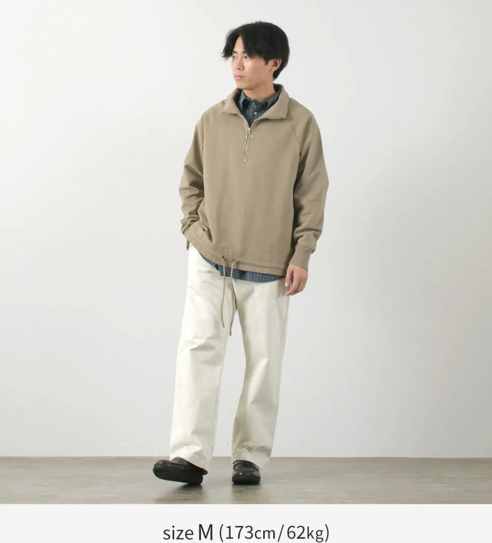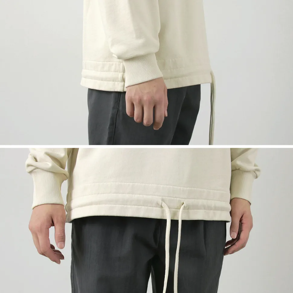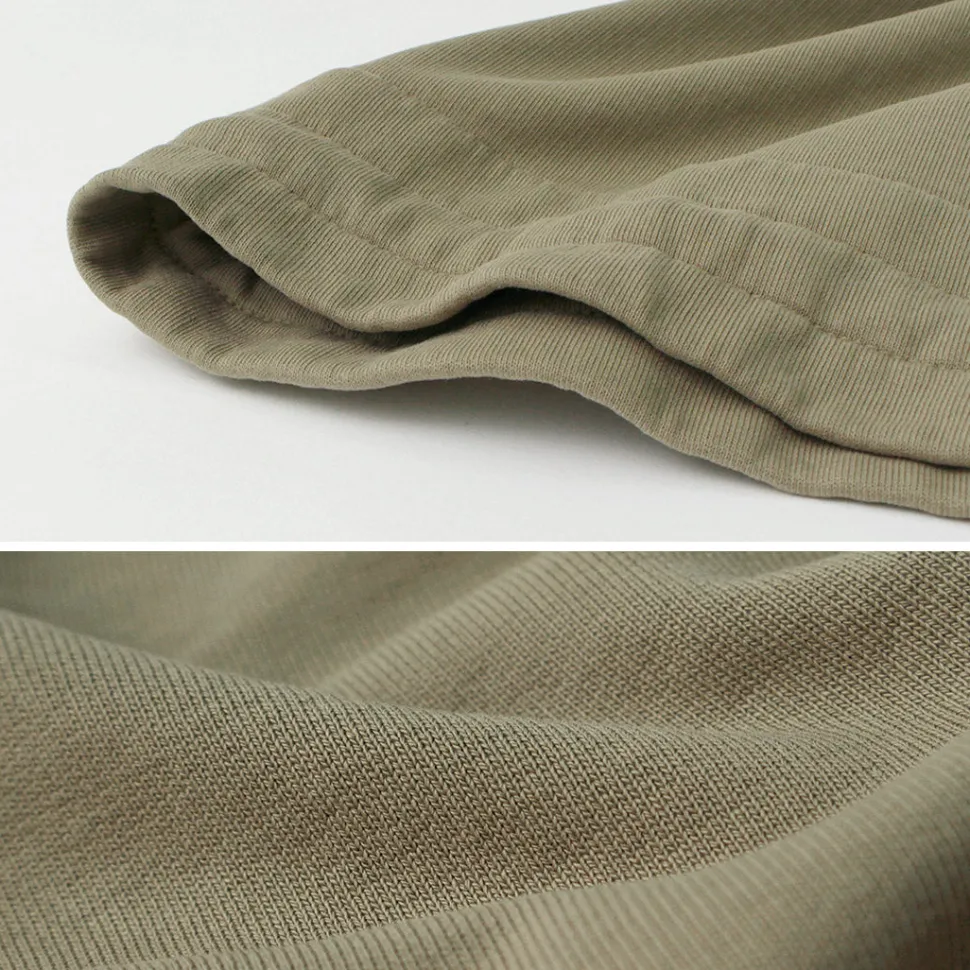 It features a dense sweat fabric. While it has the heaviness typical of heavyweight sweatshirts, it has a light and comfortable feel by reducing thickness. The back uses French terry fabric with looped threads like a towel, which has excellent water absorption and a good feel, making it easy to move in.