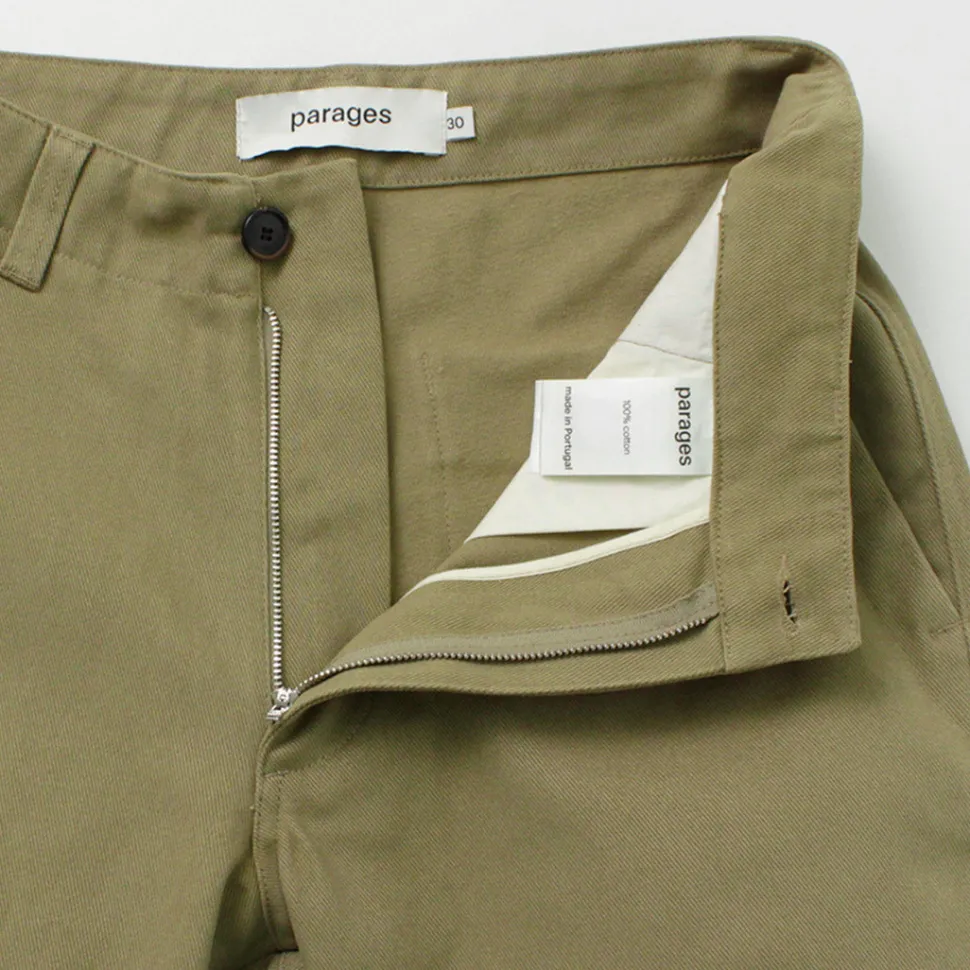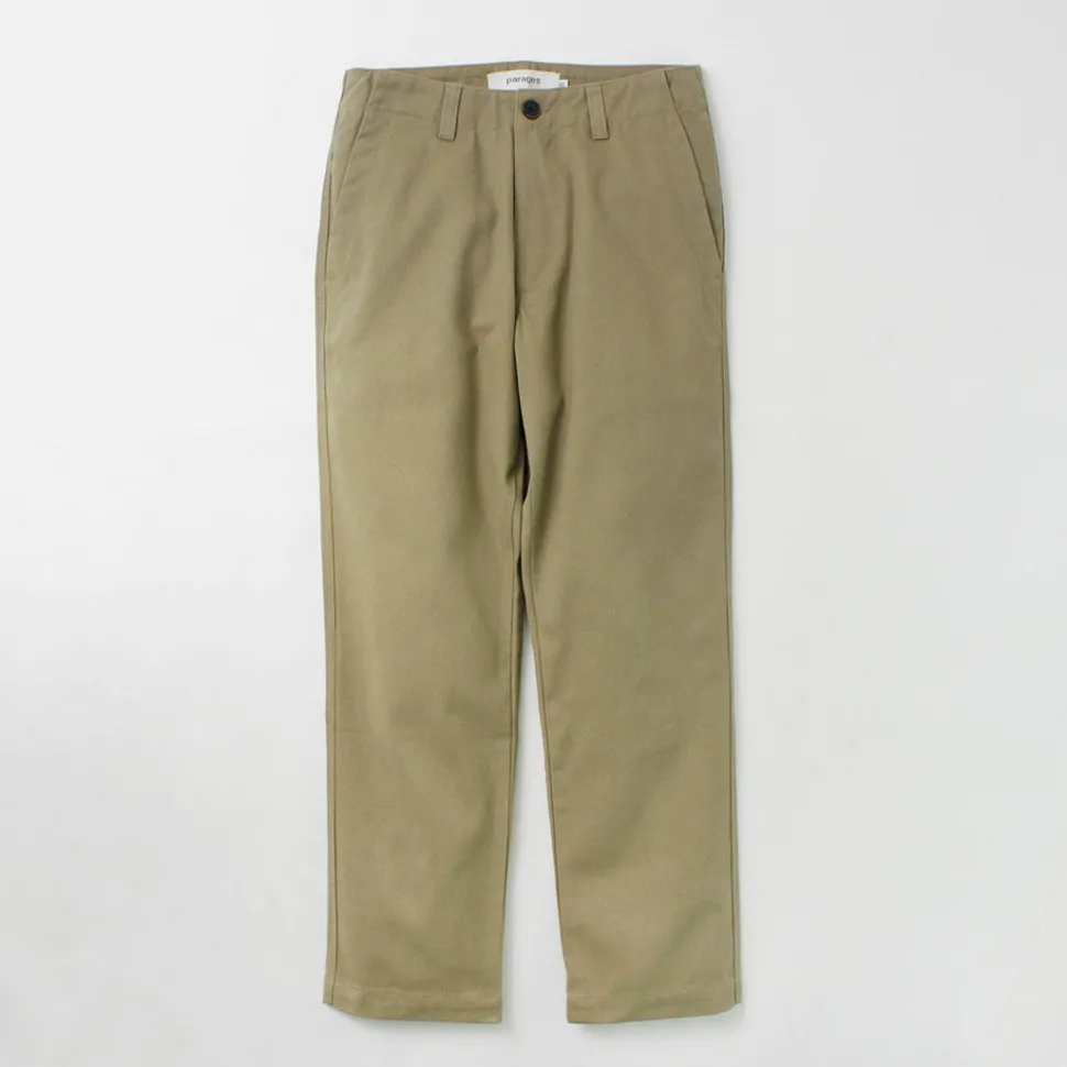 PARAGES introduces dock twill pants made of high-quality materials such as cotton fabric and horn buttons from a long-established British textile manufacturer.