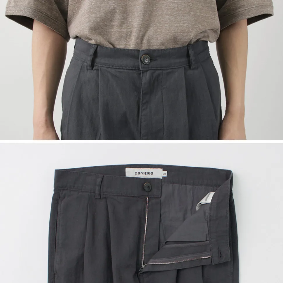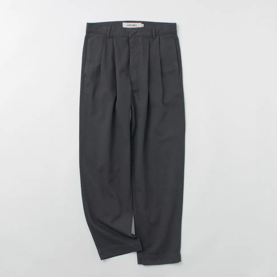 PARAGES introduces two-tuck trousers made of a luxurious herringbone fabric.