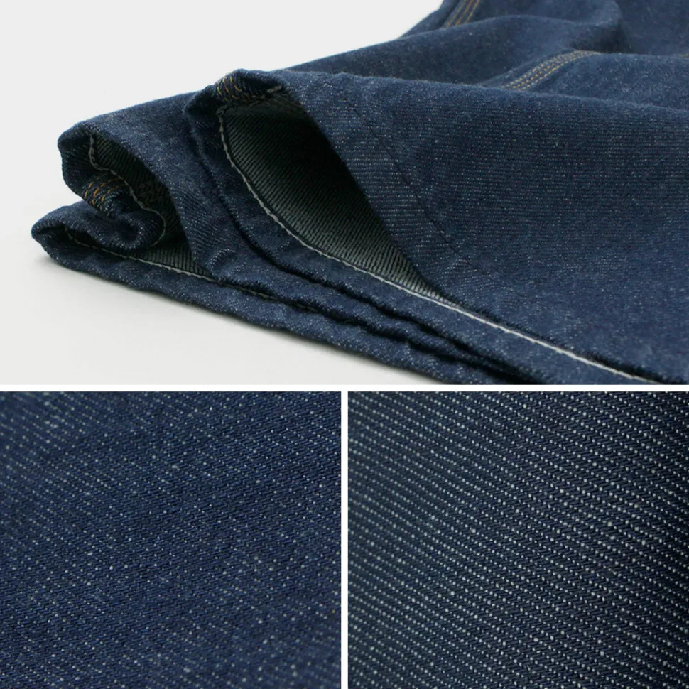 The fabric is available in two types: unwashed rigid denim and one-washed denim, allowing you to enjoy the difference in the way it grows.
