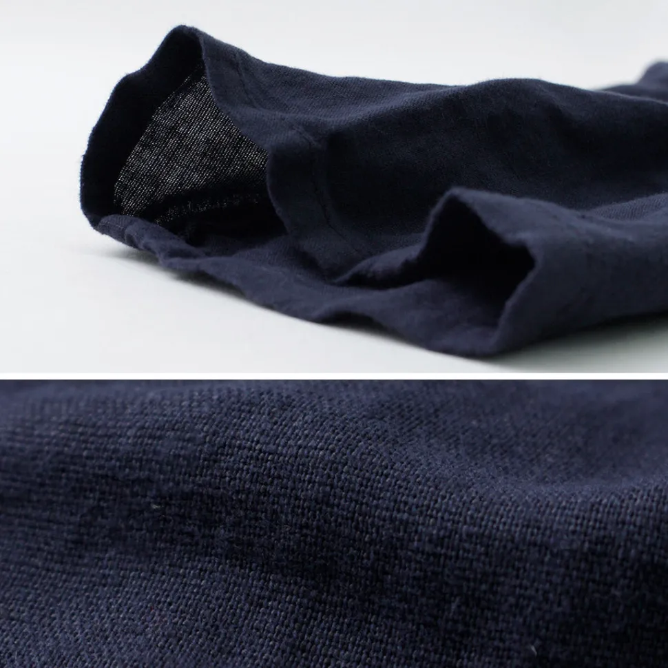 The material used is light cotton linen. The crispness characteristic of linen and the moist feel of cotton are both excellent.