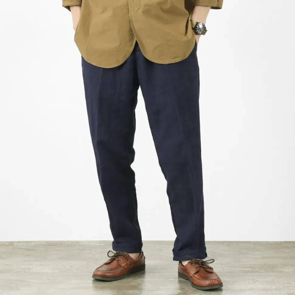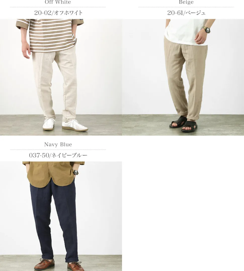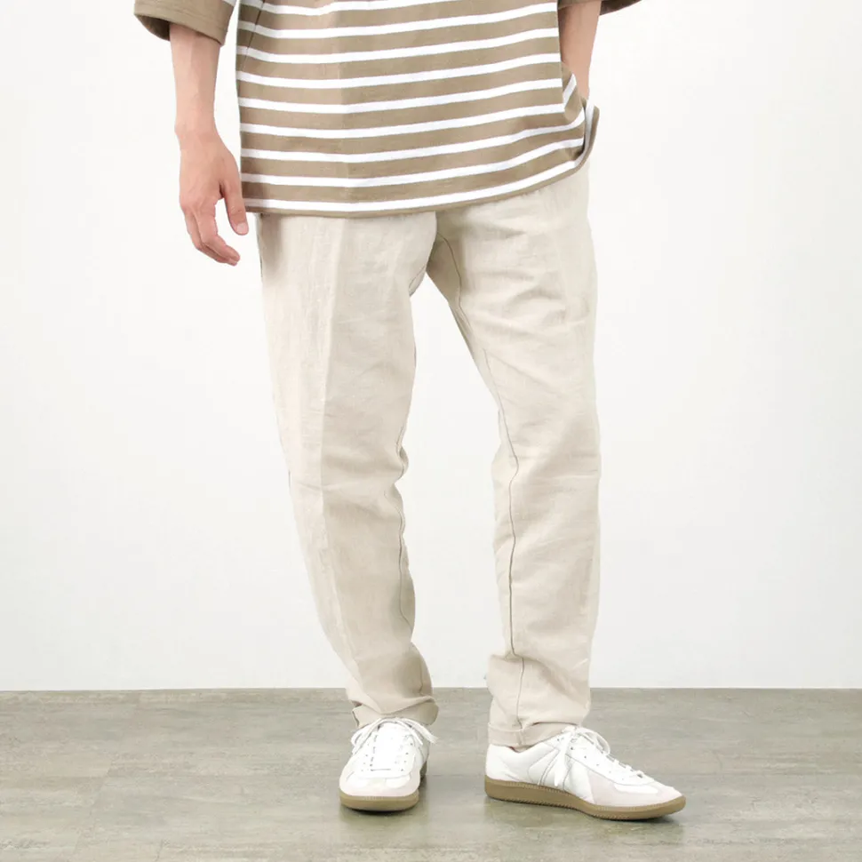 From PERFECTION, a manufacturer of high quality trousers, comes an easy pants made of linen material that is comfortable even in summer. This pair of easy pants is comfortable to wear, yet has a beautiful silhouette like slacks, giving it an elegant atmosphere, and can be coordinated with a wide range of outfits from casual to elegant.