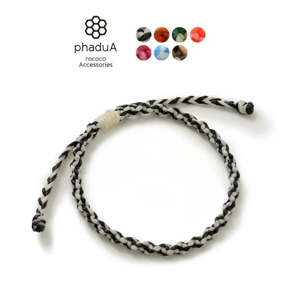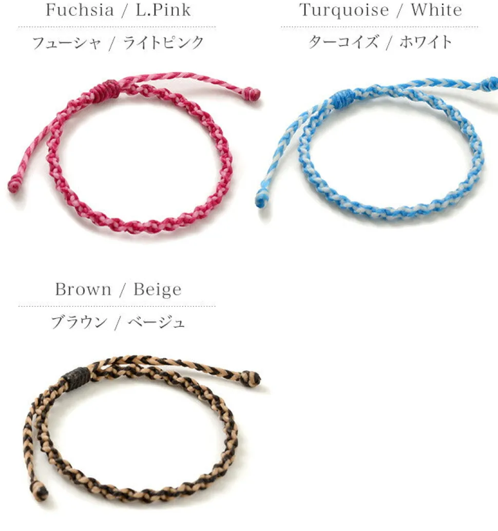 This two-tone bracelet is made of braided wax cord and has a natural texture. It is made of natural grass that has been soaked in oil and then braided, giving it a natural, tasteful texture. The knots are easy to tie and the material is sturdy, so it will take on a new look with use. It is also water resistant and does not fade or change color due to sweat or rain, so it is used as a material for surfers’ accessories. The perfect balance of not too thin and not too thick makes it easy to layer with other accessories. Available in two sizes for unisex use.