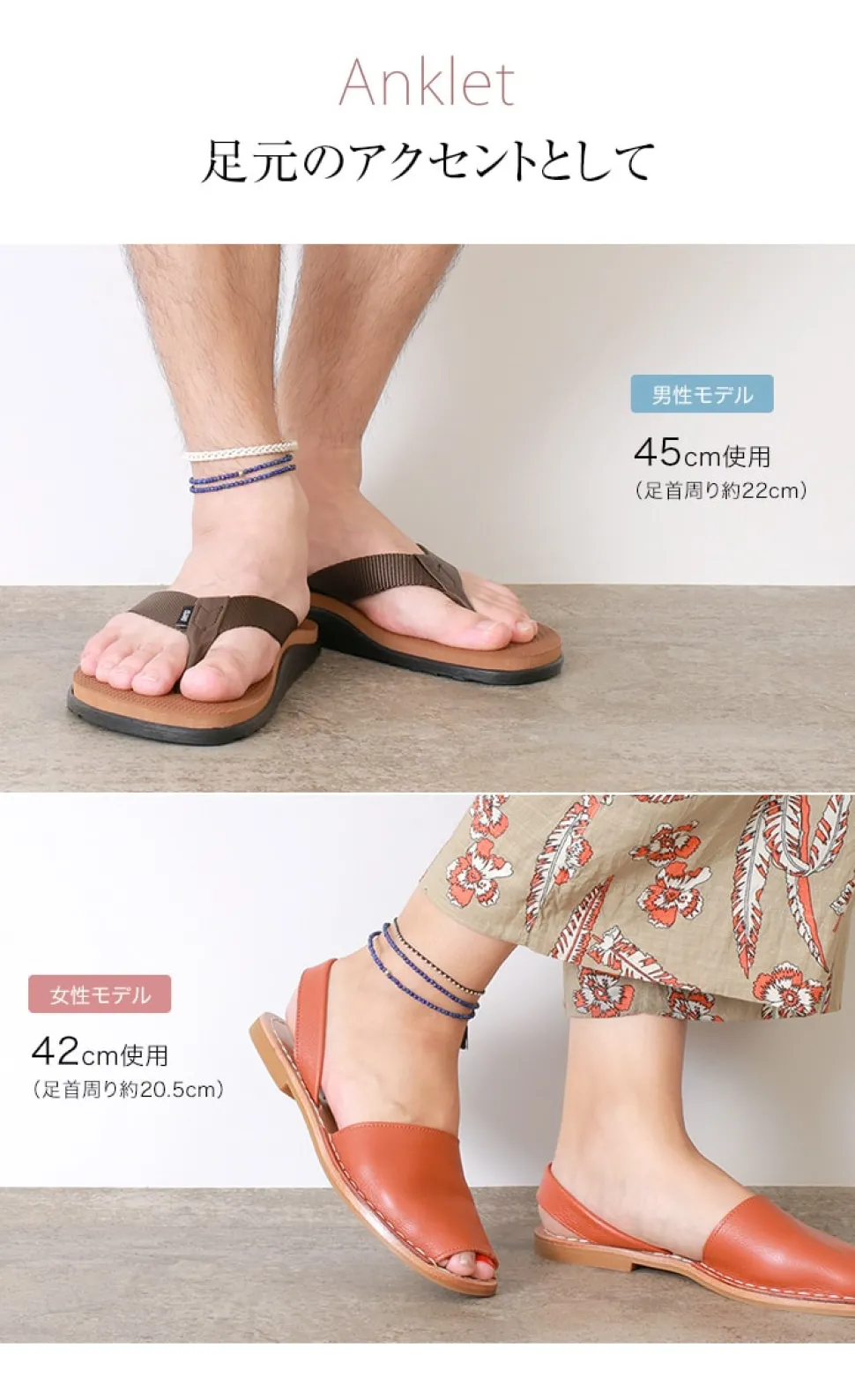 The perfect accent for your feet to enhance your style. It can be worn alone or stacked depending on your mood, purpose and location. It also works well with other cord and bead accessories.