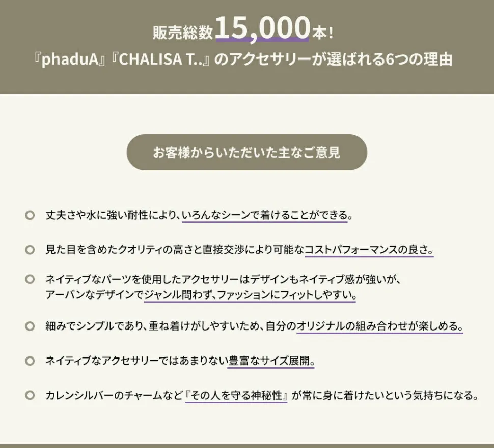Sterling silver 925 is used for all parts. As the number 925 suggests, it signifies a purity of 92.5%. Additionally, it’s resistant to rust, making it an item you can enjoy for a long time.