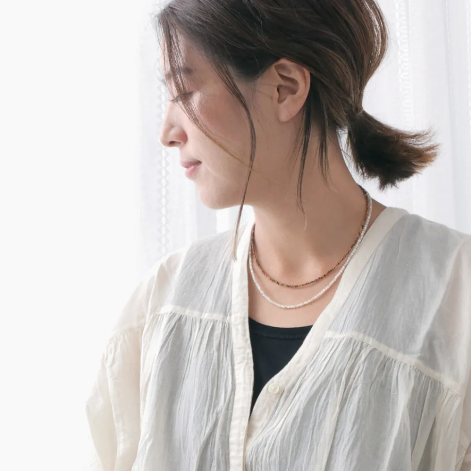 This is an accessory using tiger’s eye, which is highly popular for its power, and Karen silver, which is handcrafted one by one. It is a rare gemstone that is rarely seen in the market, and it is made of 32-sided cut 2mm beads. Tiger Eye has been used since ancient times for its “great vision”. Like the eye of a tiger, Tiger Eye is said to be an “all-seeing eye” that enhances insight, sees the true nature of things, and brings success. Karen silver is made by hand, one by one, with a high purity of about 95-99.9%, compared to about 92% for most silver jewelry. Length: 42cm, 45cm, 50cmSize of parts: Beads 2mm wide, joints (clasps) up to 5mm wideCountry of origin: MADE IN THILANDMaterials: Tiger Eye (natural stone), Karen Silver, Silver 925