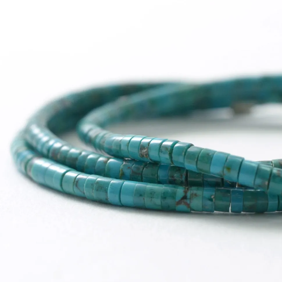 The warmth of the handmade design, crafted from natural turquoise cut into 3mm beads, is quite appealing. With a wide range of sizes available, you can layer them or wear them as a pair with friends or partners.
