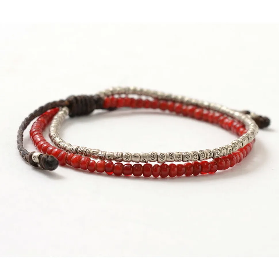 A combination of different materials adorns this two-strand bracelet, which combines eye-catching white heart beads with warm Karen silver. The bracelet is water-resistant, so you can enjoy summer activities with it on! This item is sure to enhance your summer style as a coordinating accent. You can leave it on all day! You can wear it in the shower, bath, pool, or ocean without getting sticky. It is water resistant and will not fade or shift colors due to sweat or rain, and is also used as a material for surfers’ accessories. Available in two sizes for unisex enjoyment. It is also a perfect item for pair accessories and gifts. It can also be worn in layers depending on your mood, purpose, or location. It goes well with other cord and bead accessories.