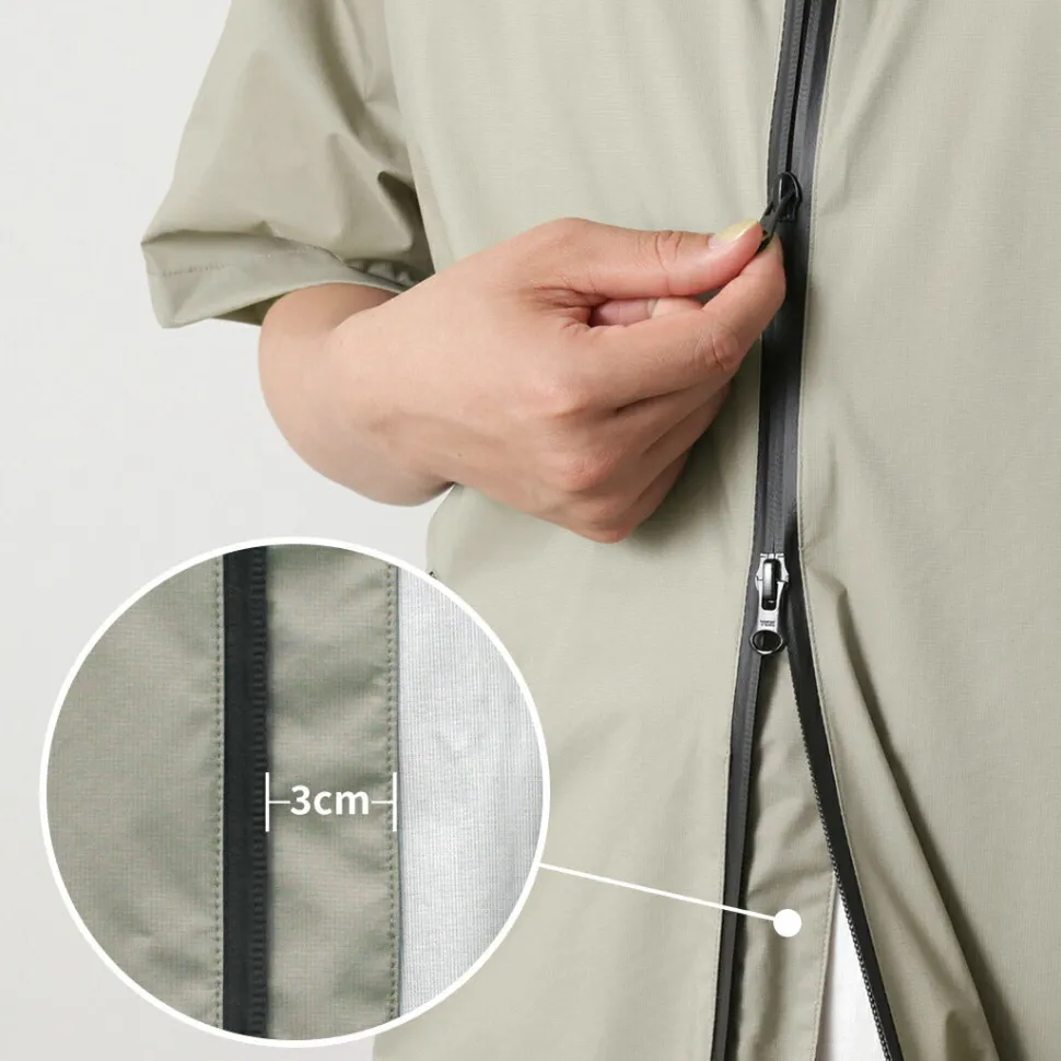 The design features short sleeves that protect only the parts you don’t want to get wet, making this an active item that frees you from the hassle inherent in long sleeves.